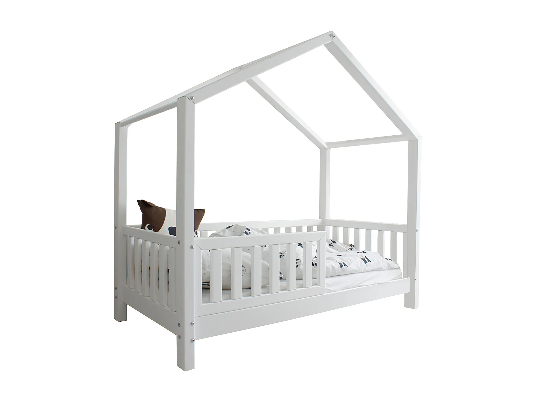 Lit cabane 90x200 barrière et sommier inclus pieds 10 cm Roxane Blanc