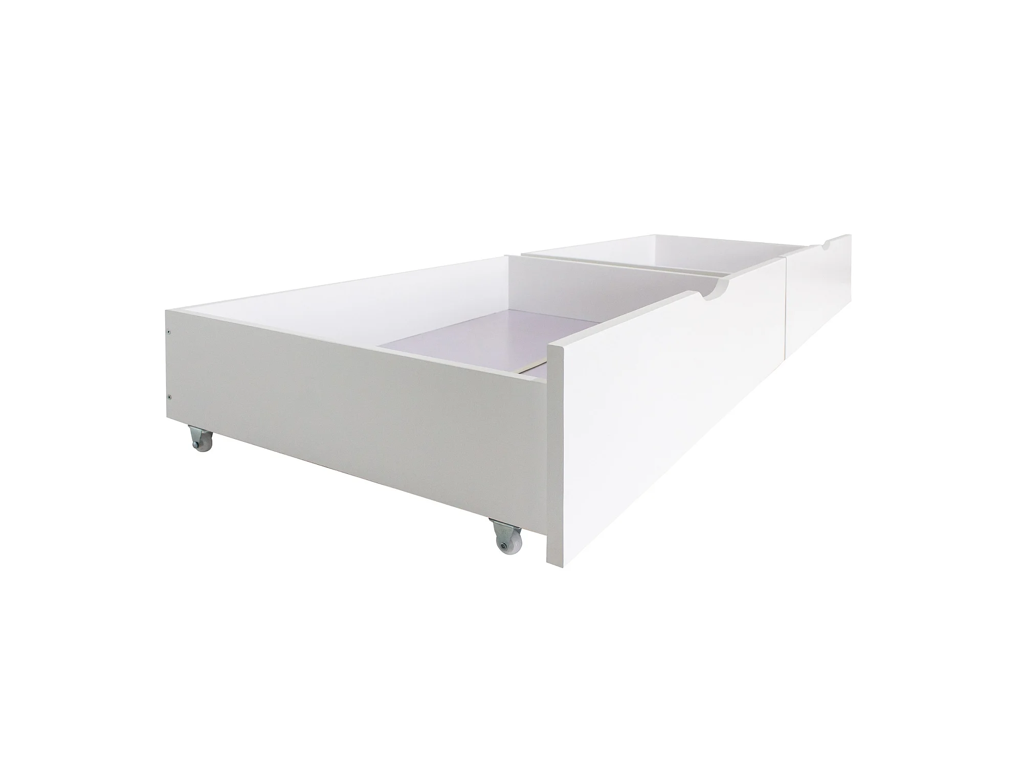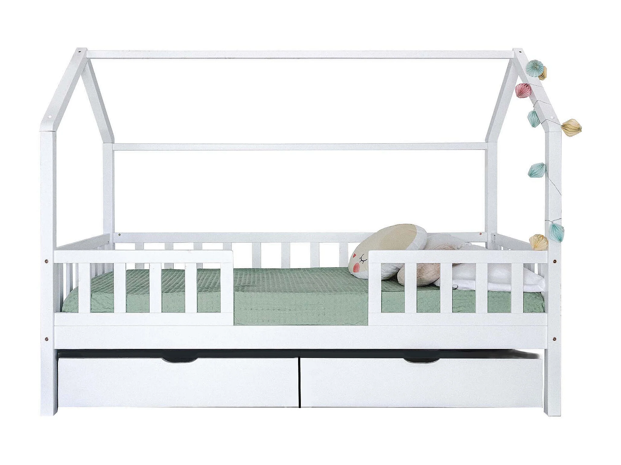 Lit cabane avec barrièrre + 2 tiroirs bois blanc 90x190cm