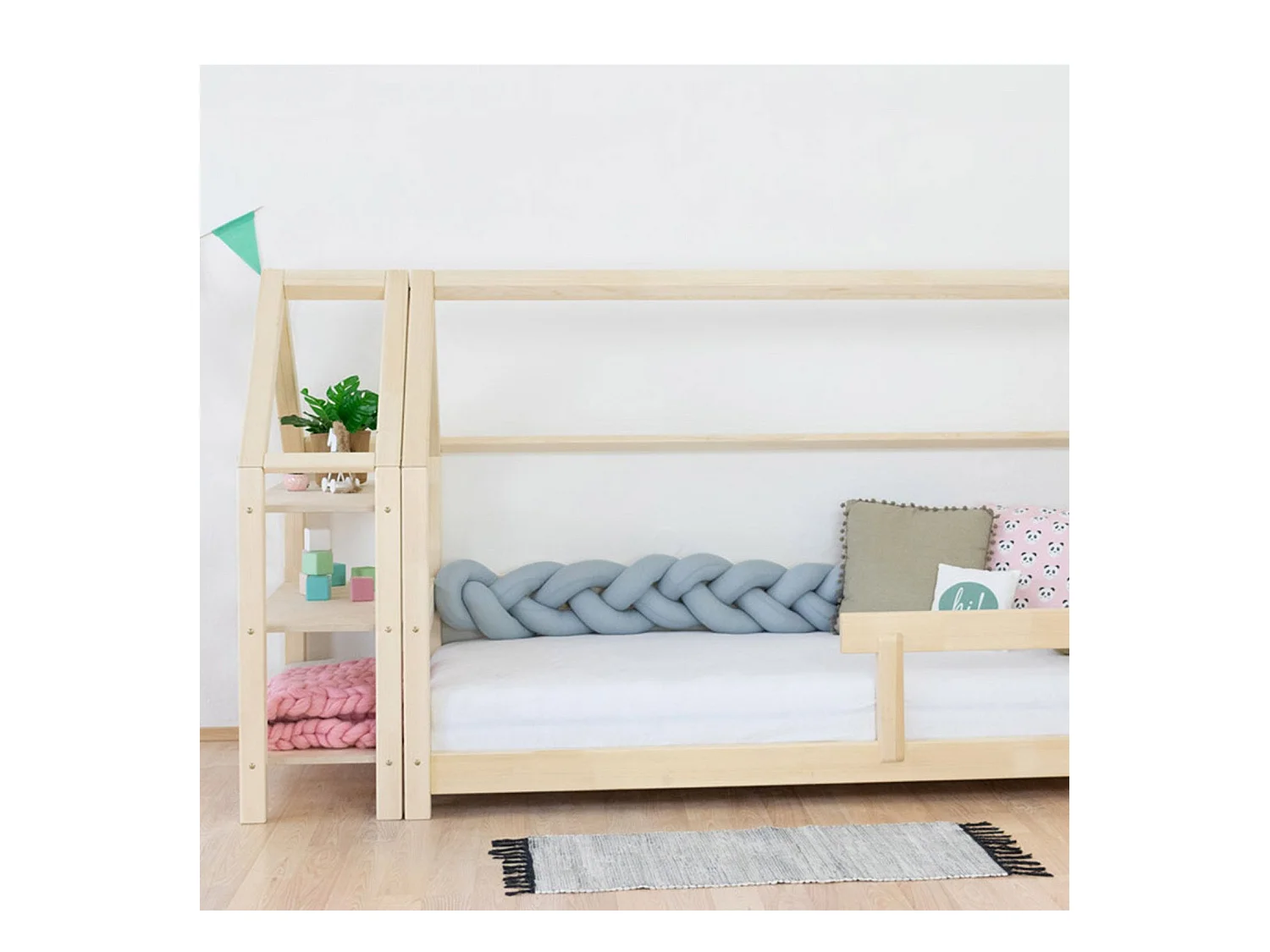 Lit cabane avec étagère 120 x 180 naturel et gris