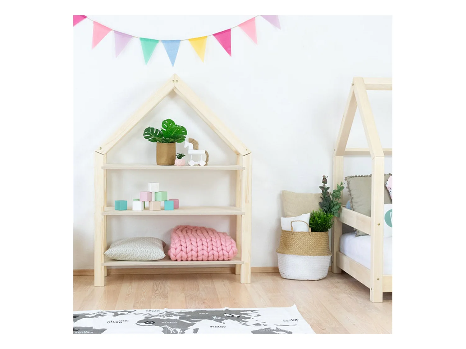 Lit cabane avec étagère 120 x 180 naturel et blanc