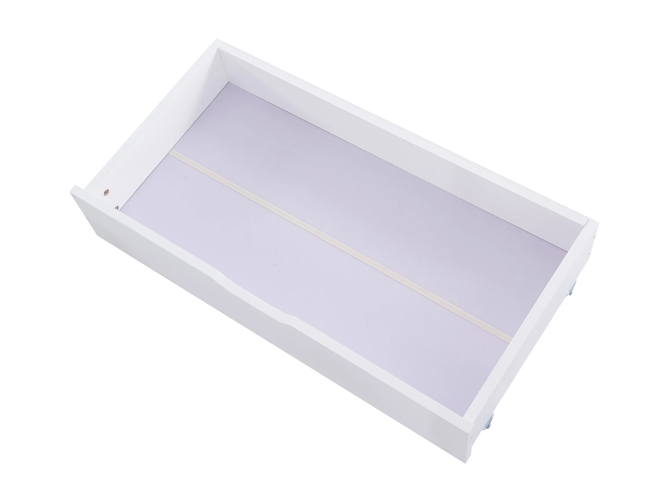 Lit Enfant Maison 90 x 200 cm - En Bois Massif Avec Tableau 84 x 39 cm, 2 Tiroirs Et Sommier À Lattes - Blanc - Sans Matelas