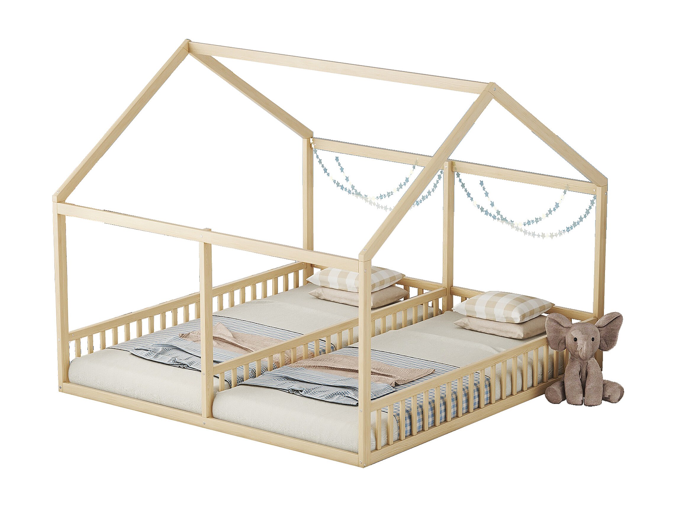 Lit cabane enfant 90x200cm avec sommier - lit deux en un - cadre de lit en bois - naturel clair (sans matelas)