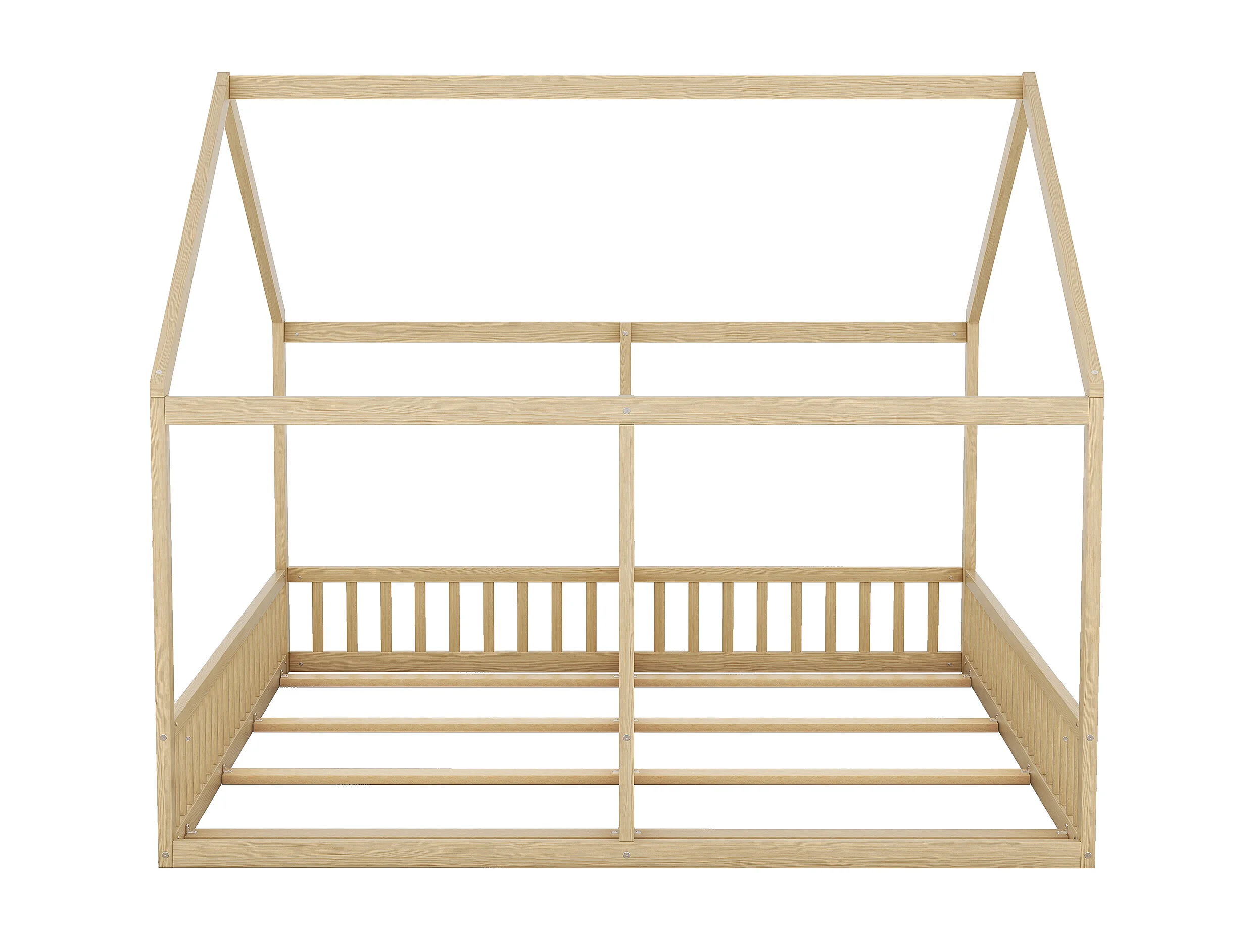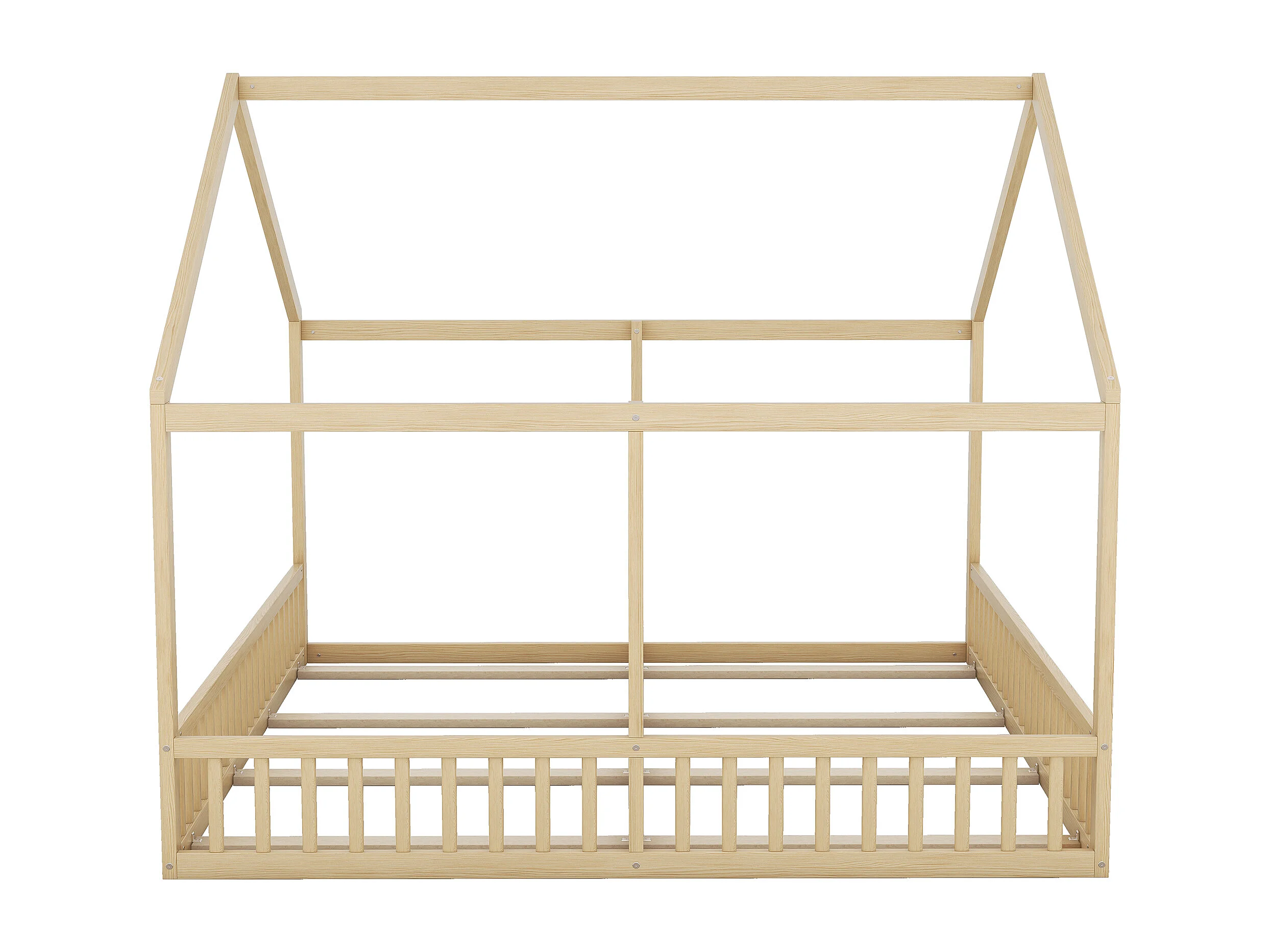 Lit enfant 90x200 cm, 2 en 1 avec séparation centrale, style maison avec toit, pin, naturel (Sans matelas)