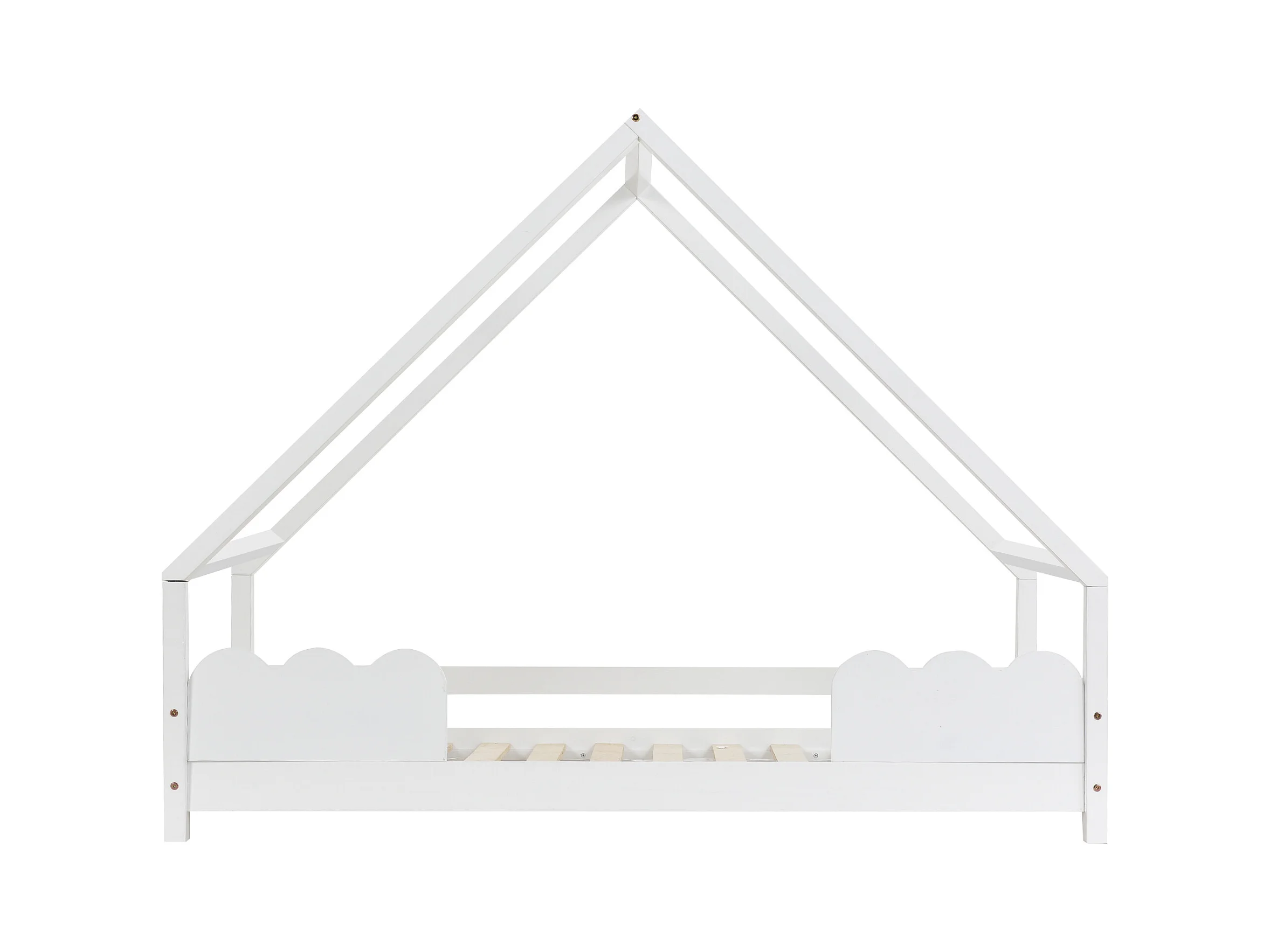 Lit cabane 90x200cm avec sommier - protection anti-chute - bois - blanc (sans matelas)