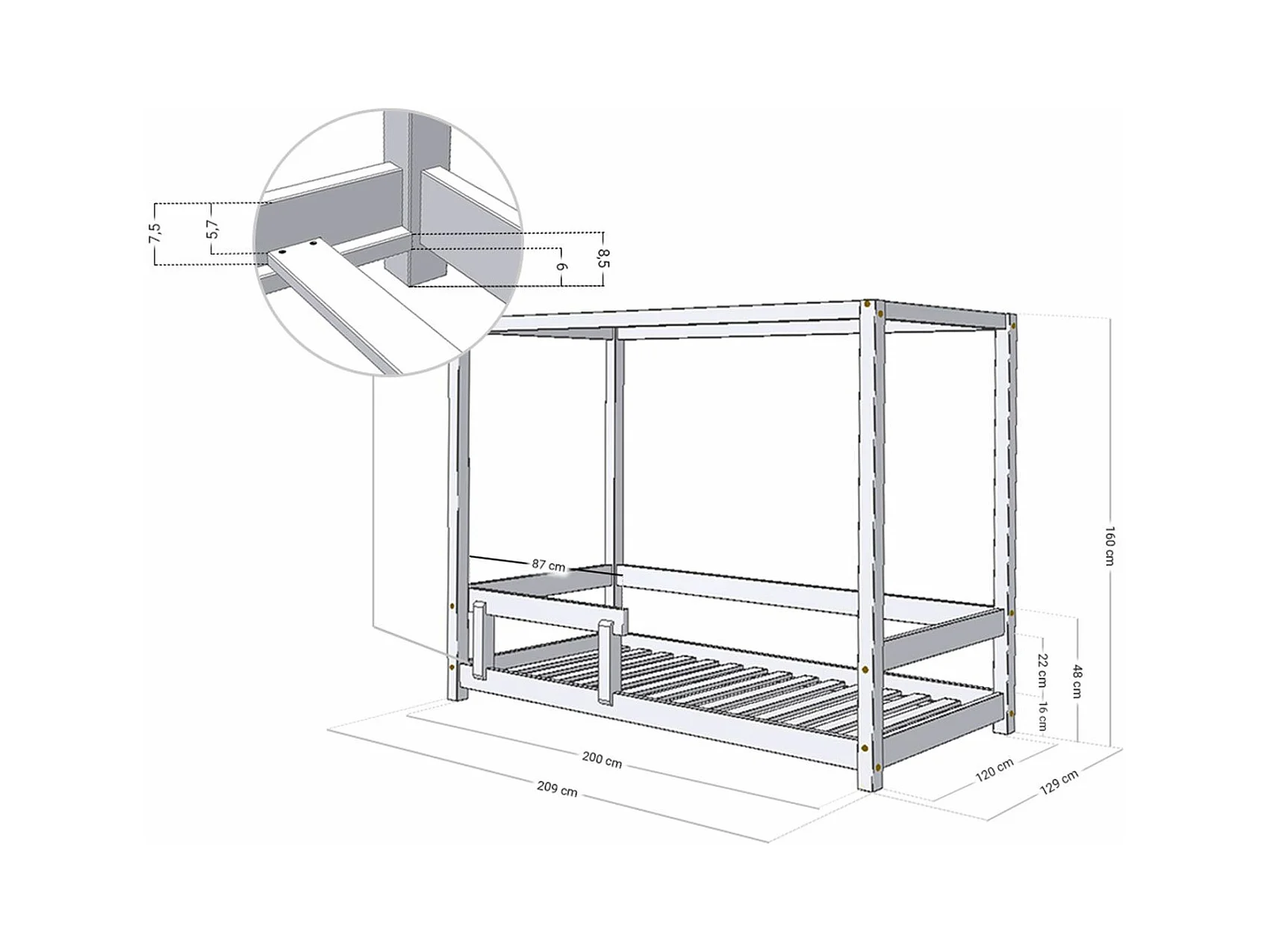 Lit cabane enfant BUNKY 120 x 200 gris clair