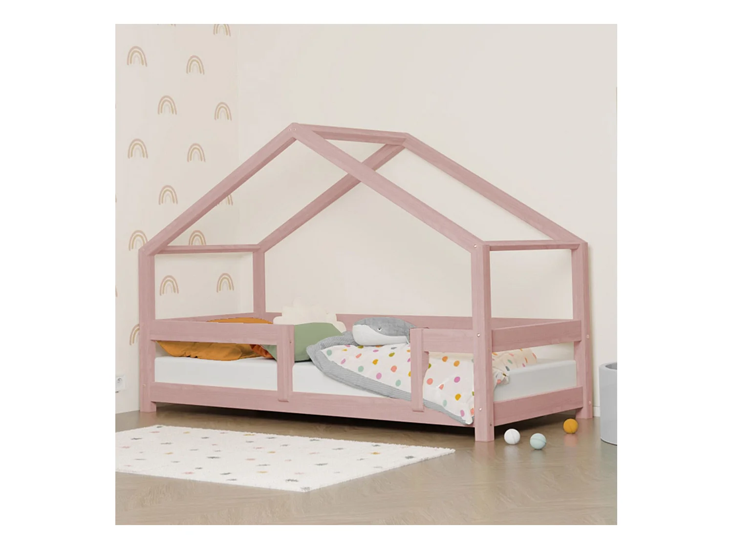 Lit cabane enfant 90x200 cm, en pin rose au sol– Design maison,facile à monter(sans matelas)