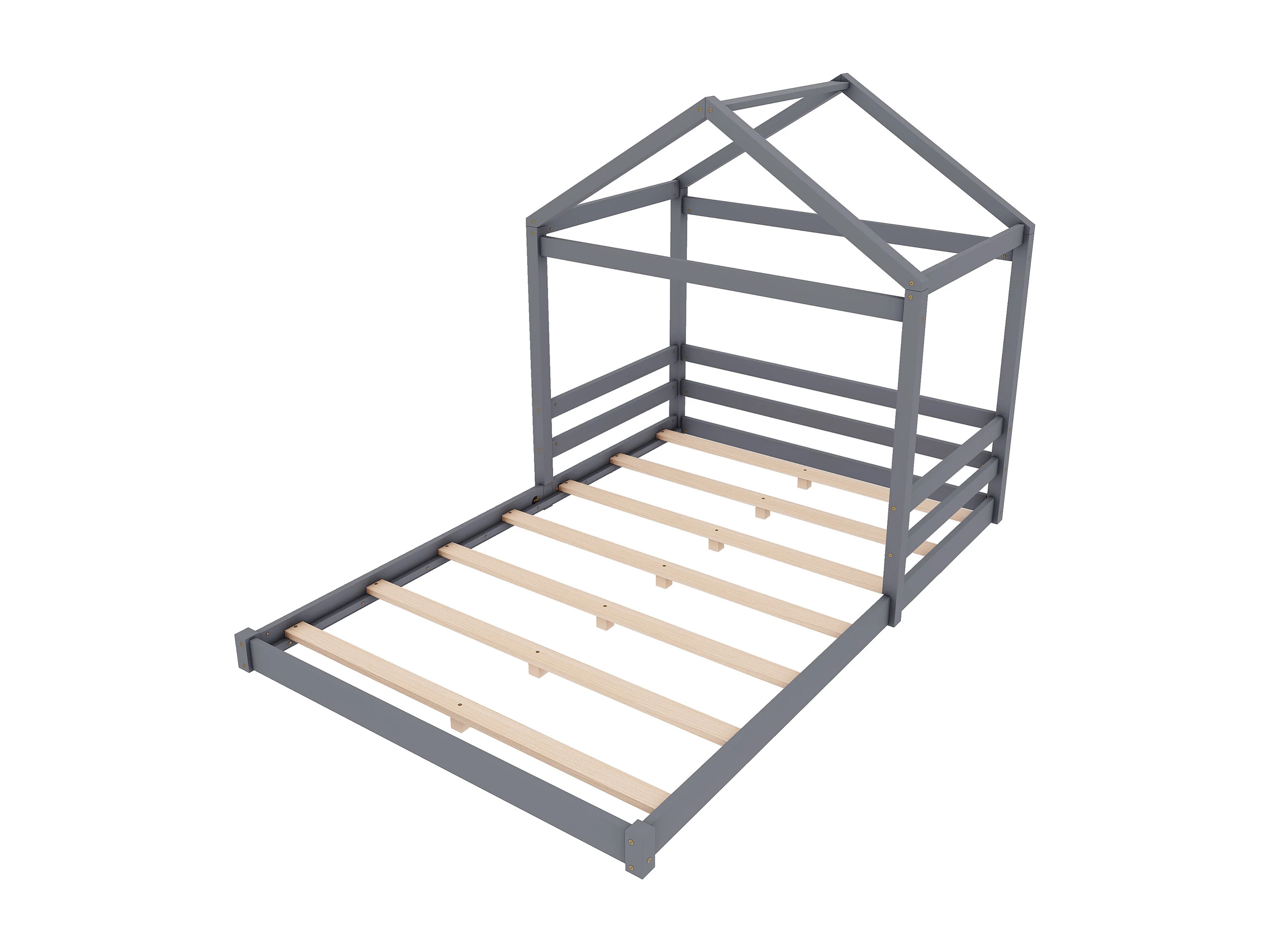 Lit cabane 140x200cm en bois massif - avec sommier à lattes - Gris (matelas non inclus)