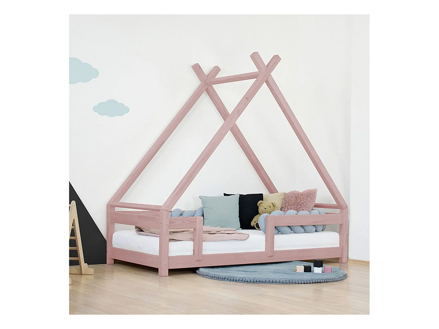 Lit cabane enfant TAHUKA 140 x 200 rose pastel