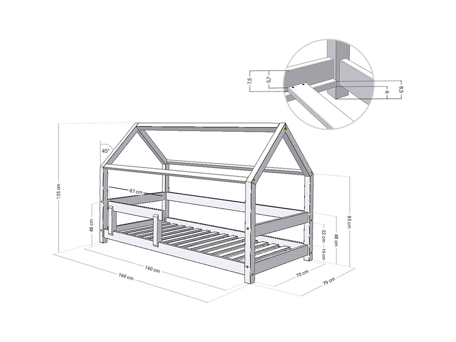 Lit cabane enfant POPPI 80 x 160 rouge brique 2