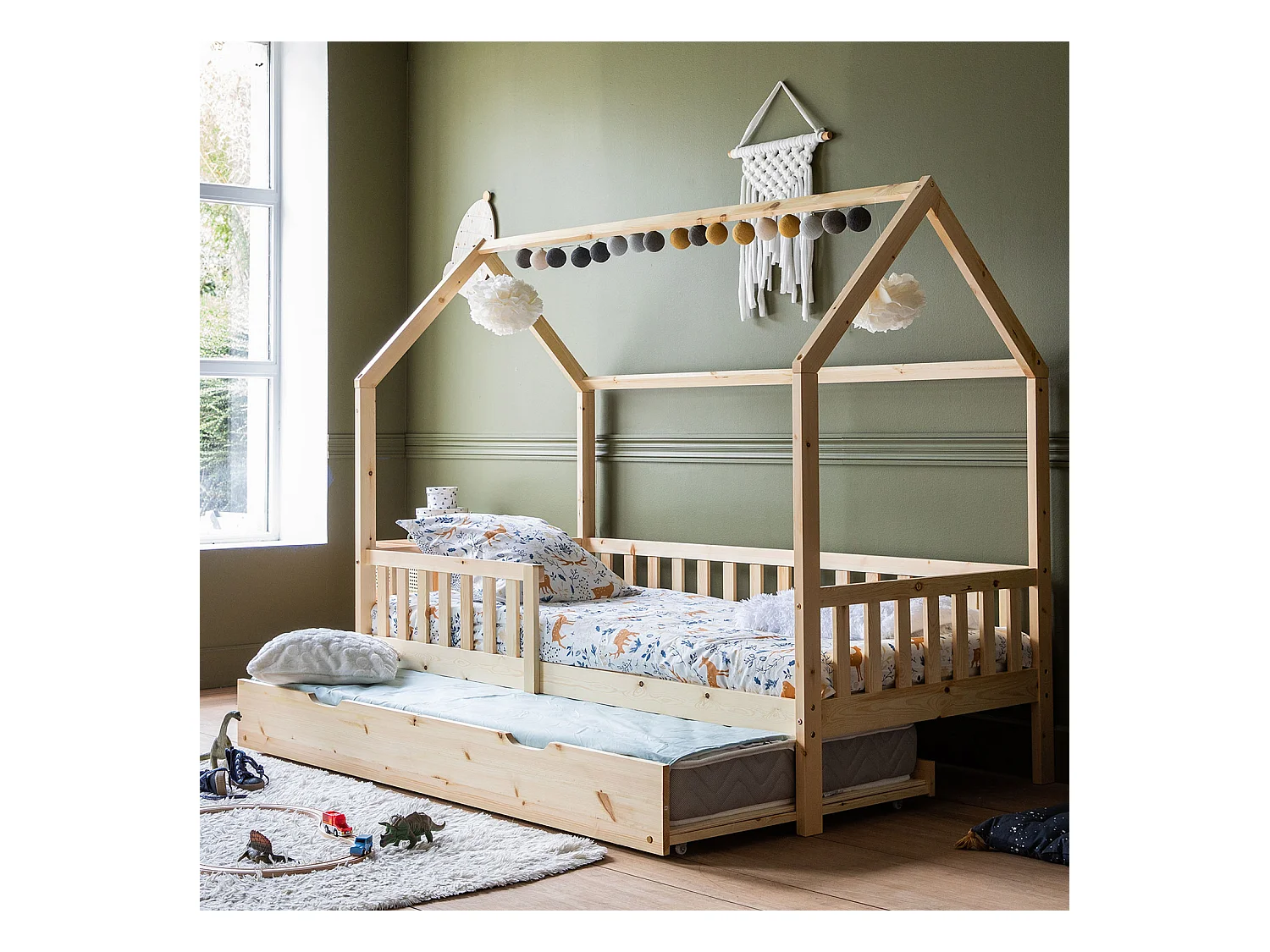 Lit cabane gigogne pour enfant 190x90cm en bois MARCEAU - HAPPY GARDEN
