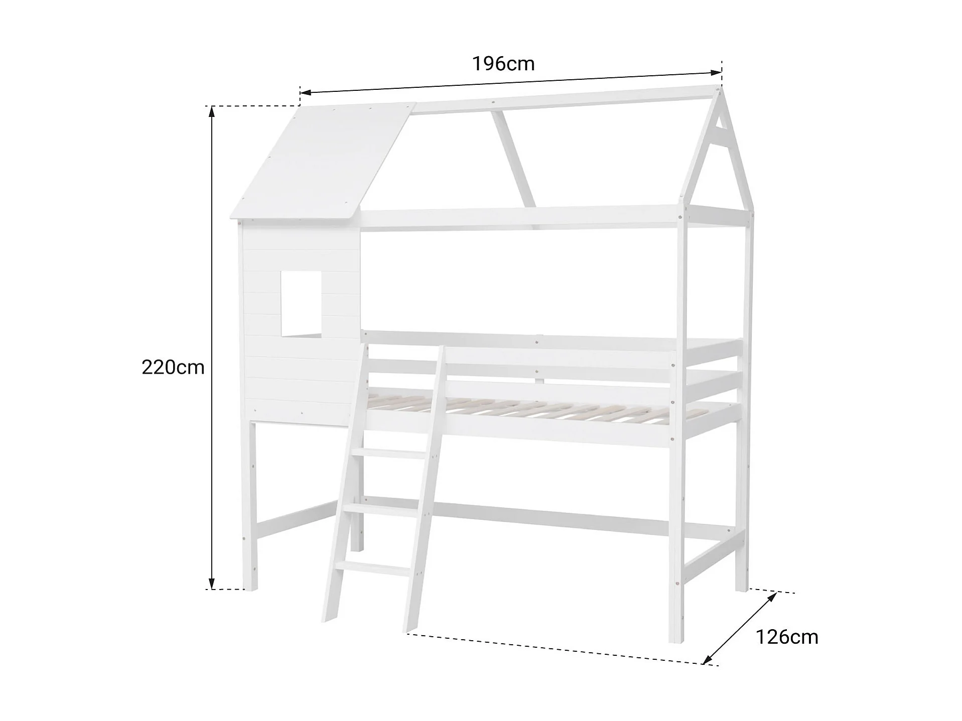Lit cabane mezzanine pour enfant 190x90cm blanc MARGOT - HAPPY GARDEN