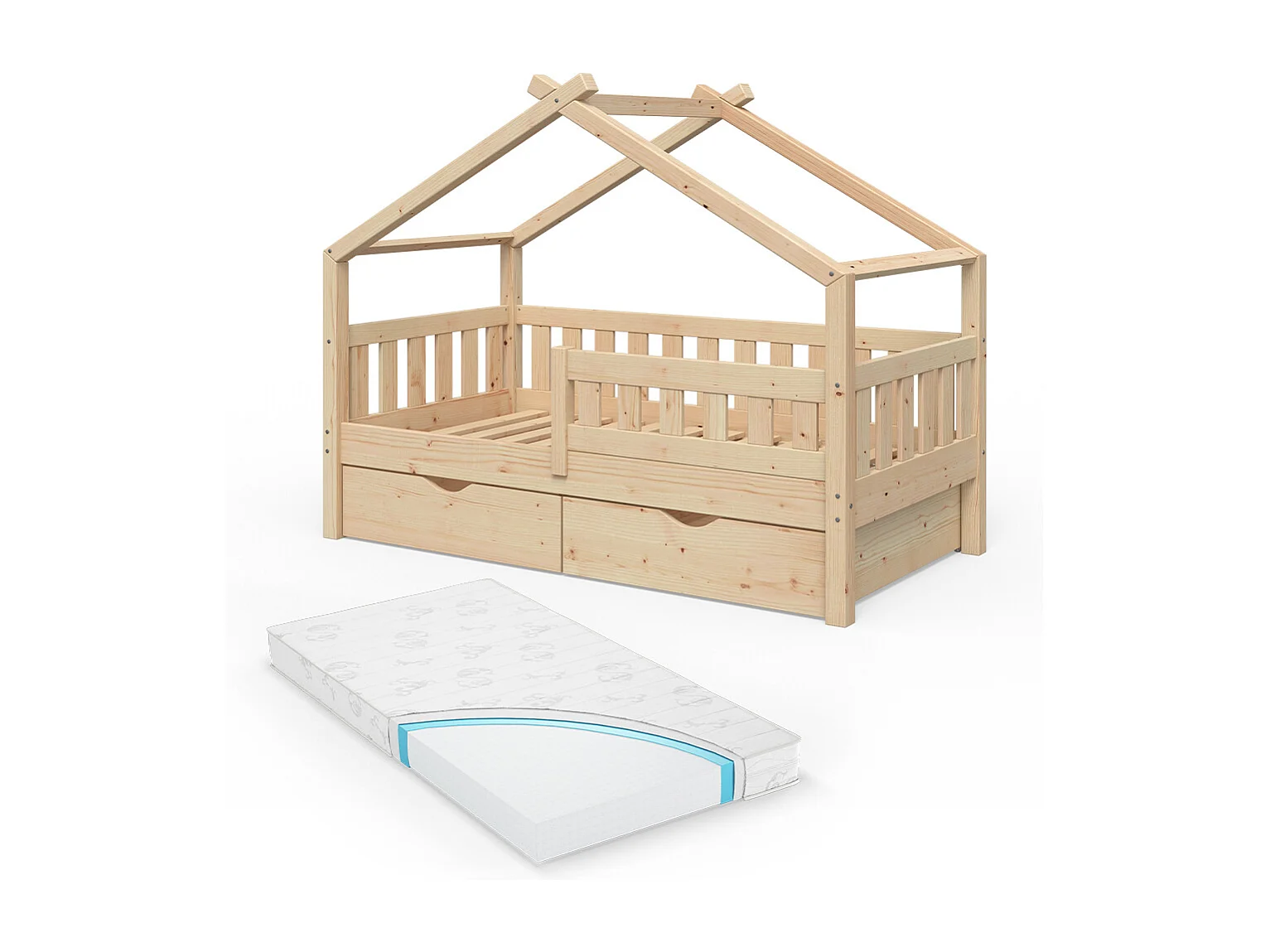 Lit cabane naturel bois 167.6x87.6x133.6 design