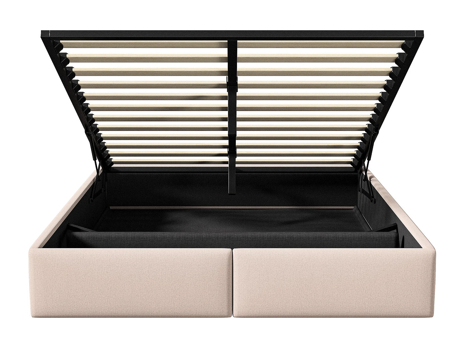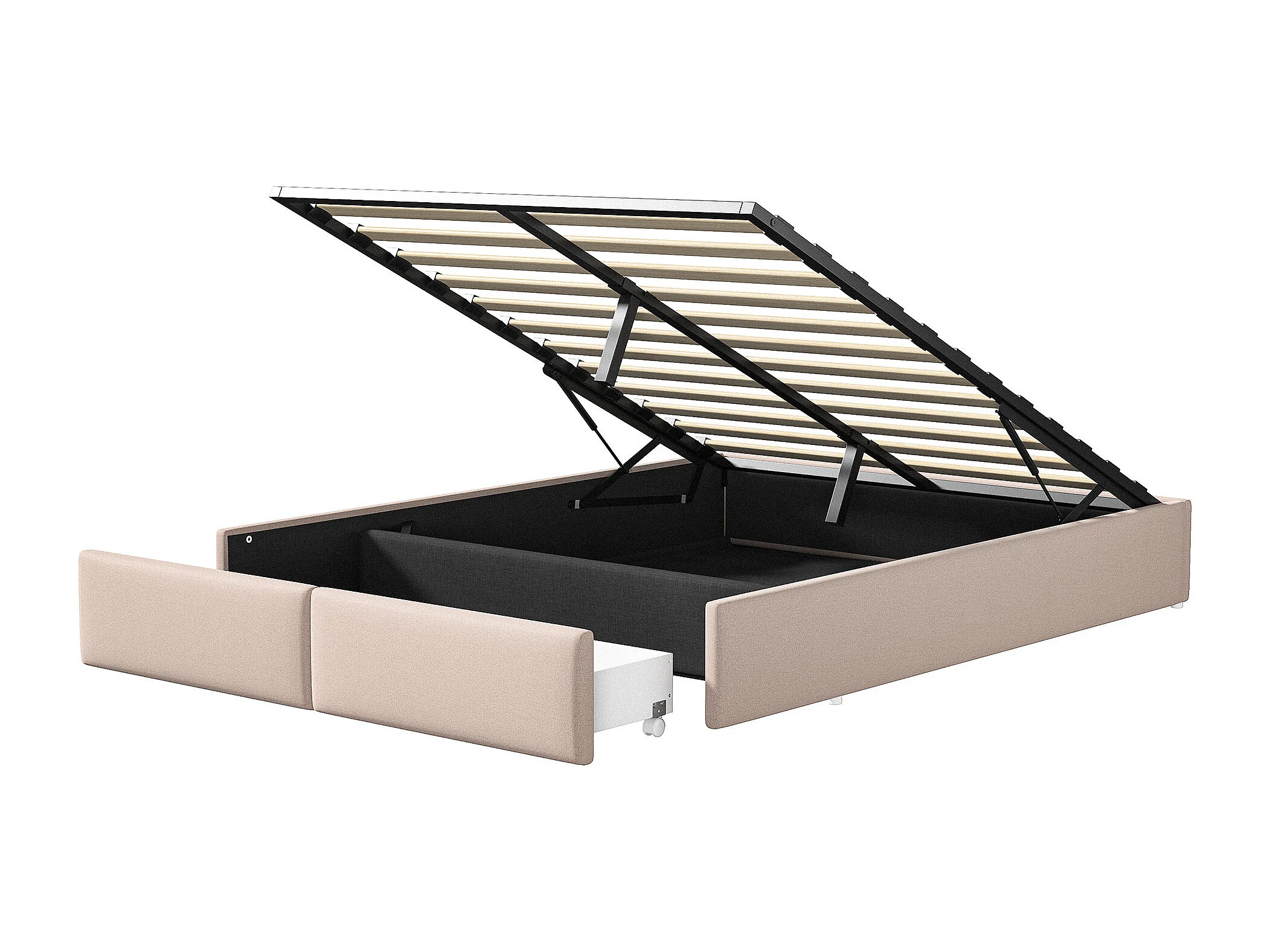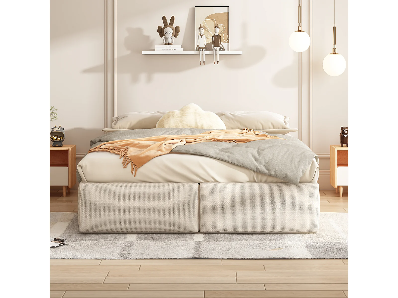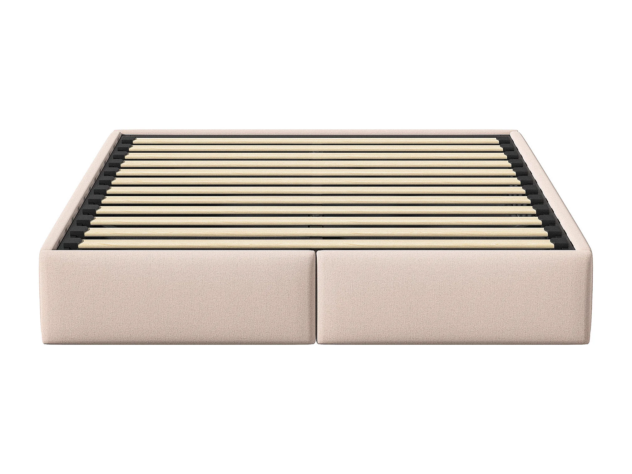 Lit capitonné 140 x 200 cm, plate-forme avec 2 tiroir, sans tête de lit, beige