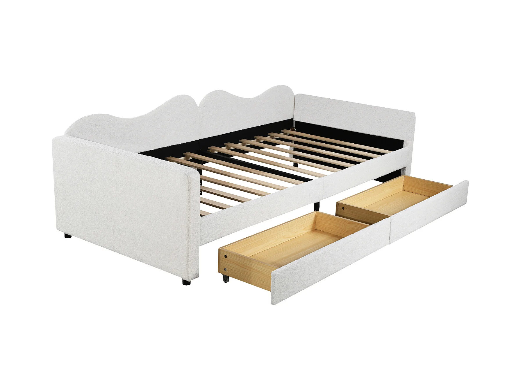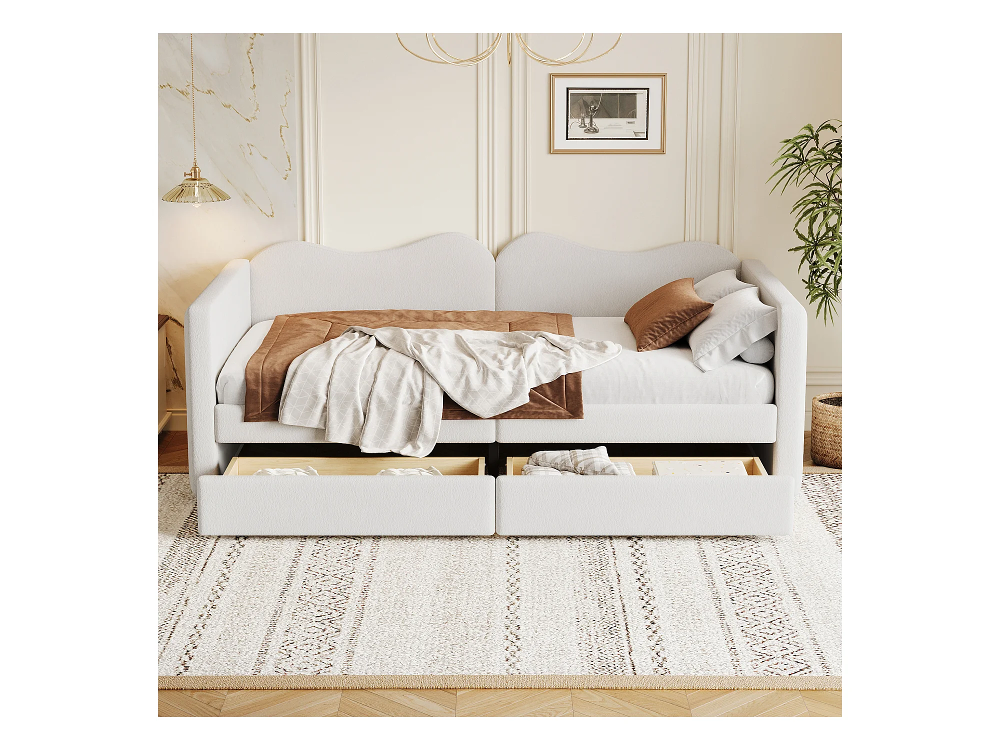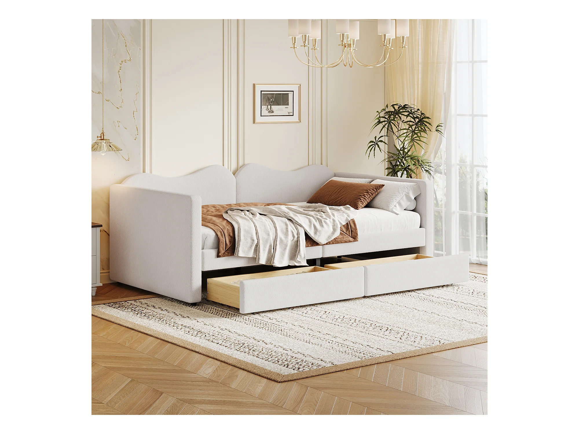 Lit capitonné 90 x 200 cm avec 2 tiroirs, canapé-lit - tissu ours en peluche - coloris blanc