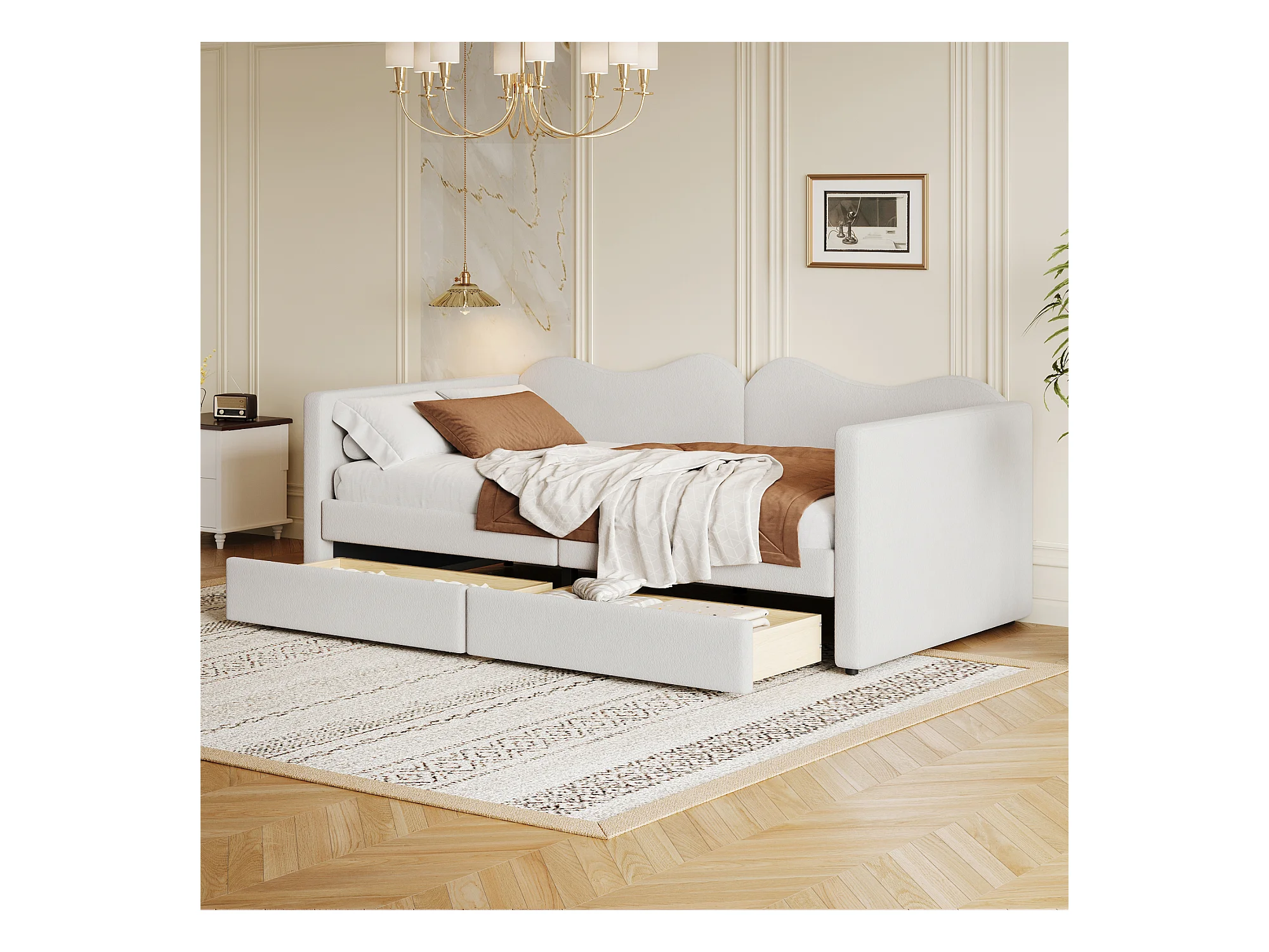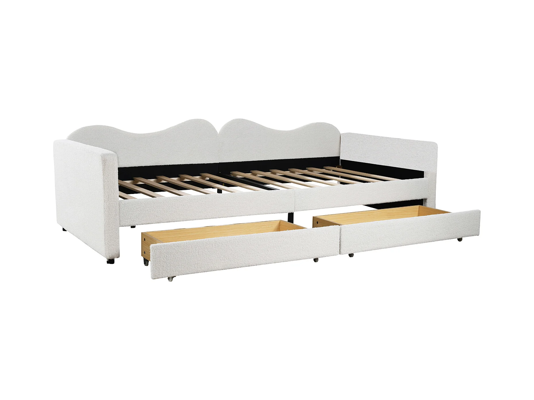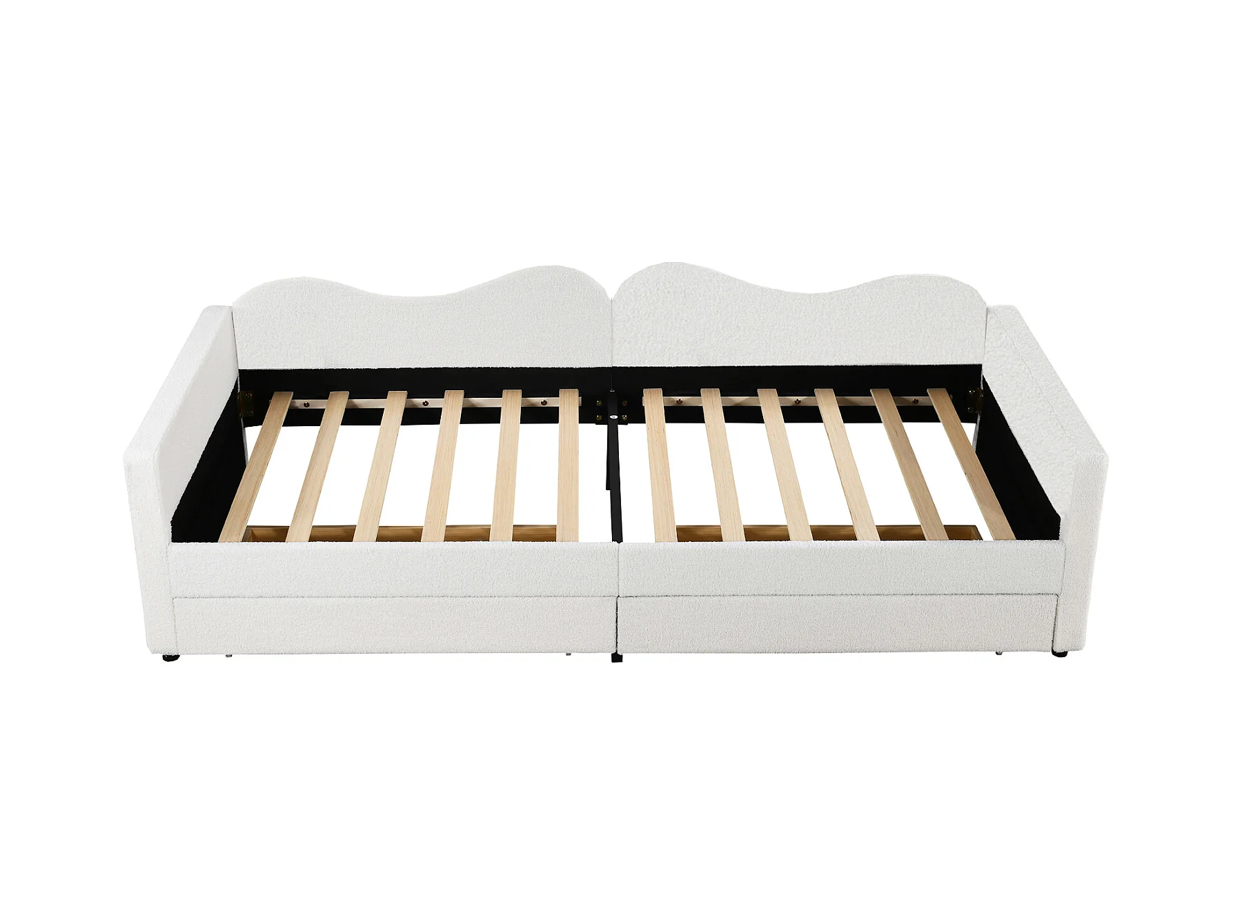 Lit capitonné 90 x 200 cm avec 2 tiroirs, canapé-lit - tissu ours en peluche - coloris blanc
