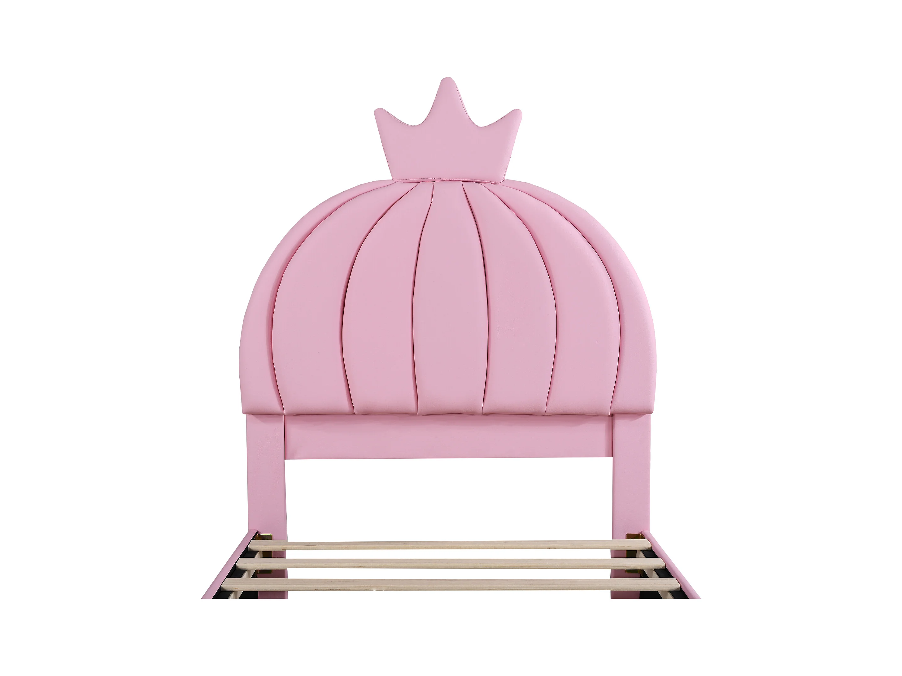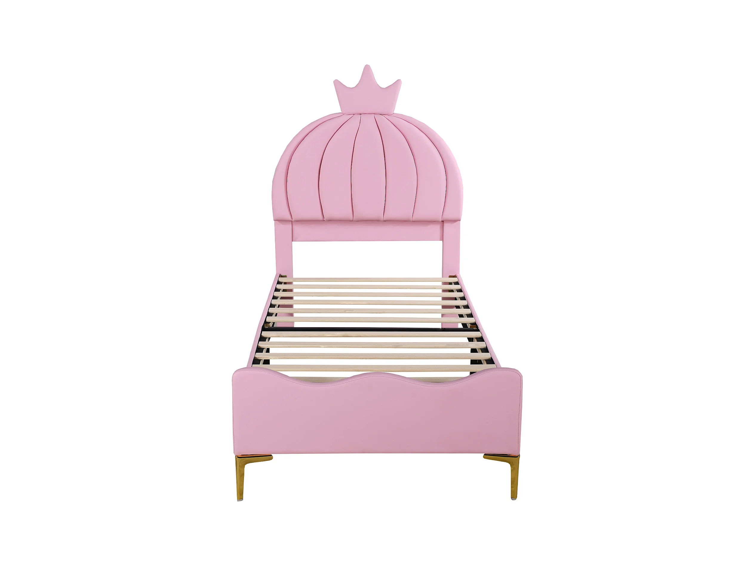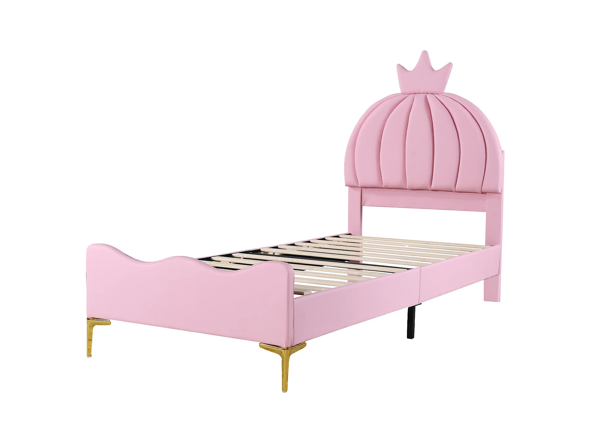 Lit capitonné 90 x 200 cm - Simili cuir et métal - Tête de lit en forme de couronne - Coloris rose