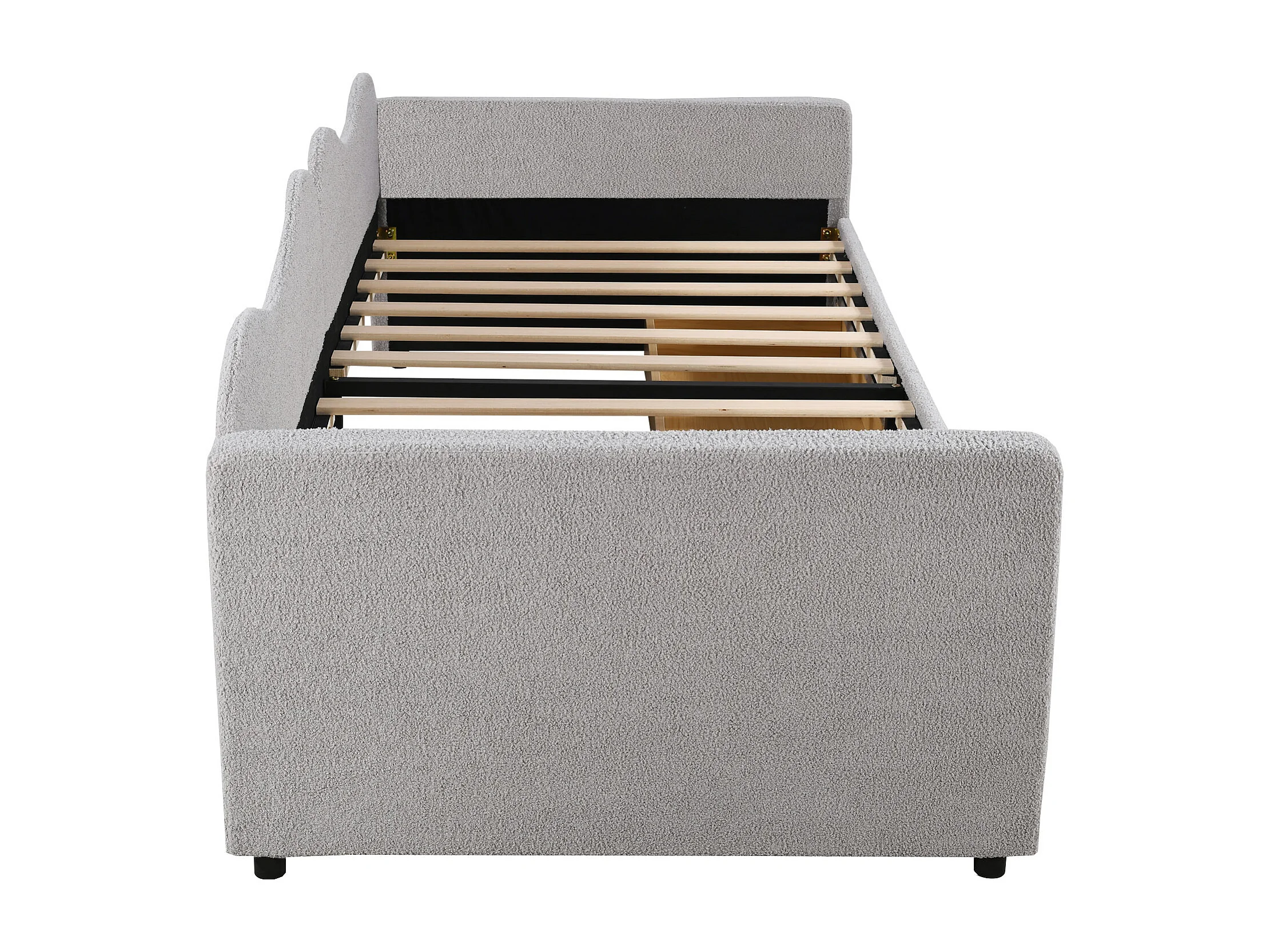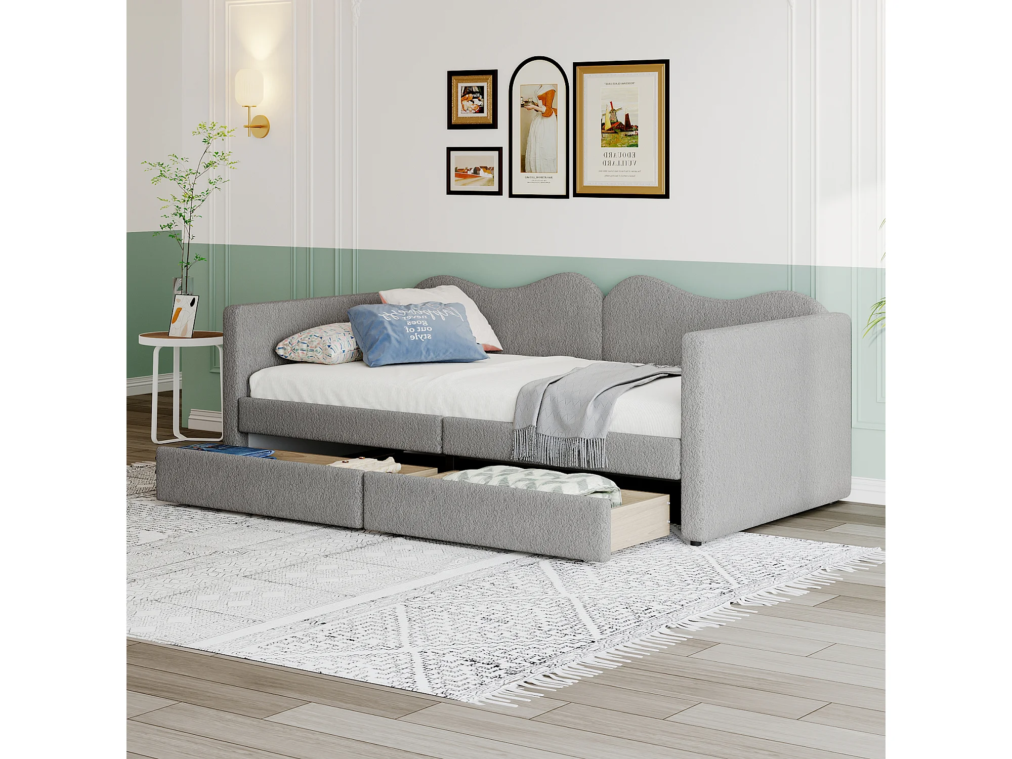 Lit capitonné 90x200 cm, avec Rangement Lit d'enfant avec sommier à Lattes et Deux tiroirs, Gris