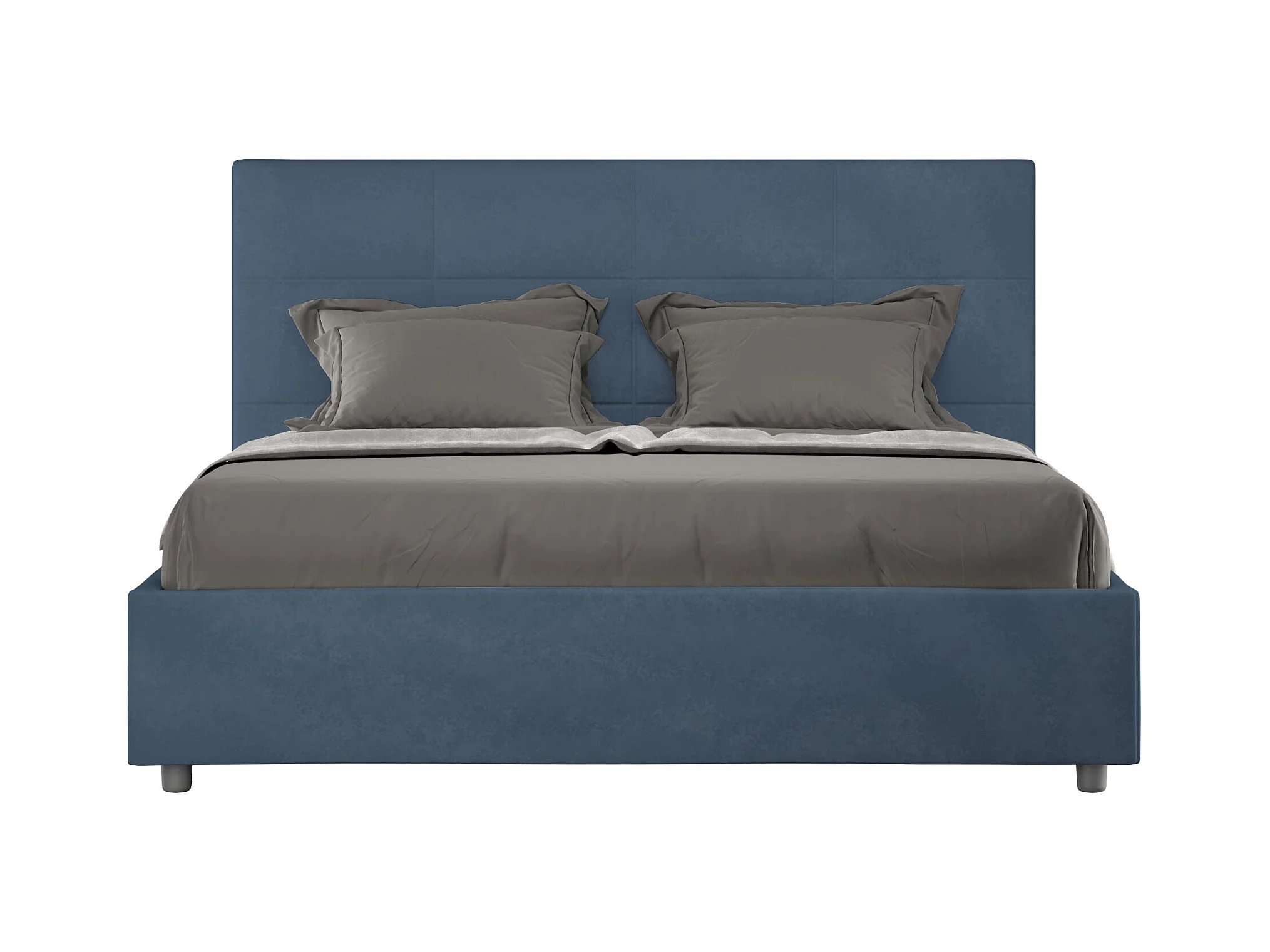 Lit double sans sommier rembourré 140x210 microfibre bleu Mika