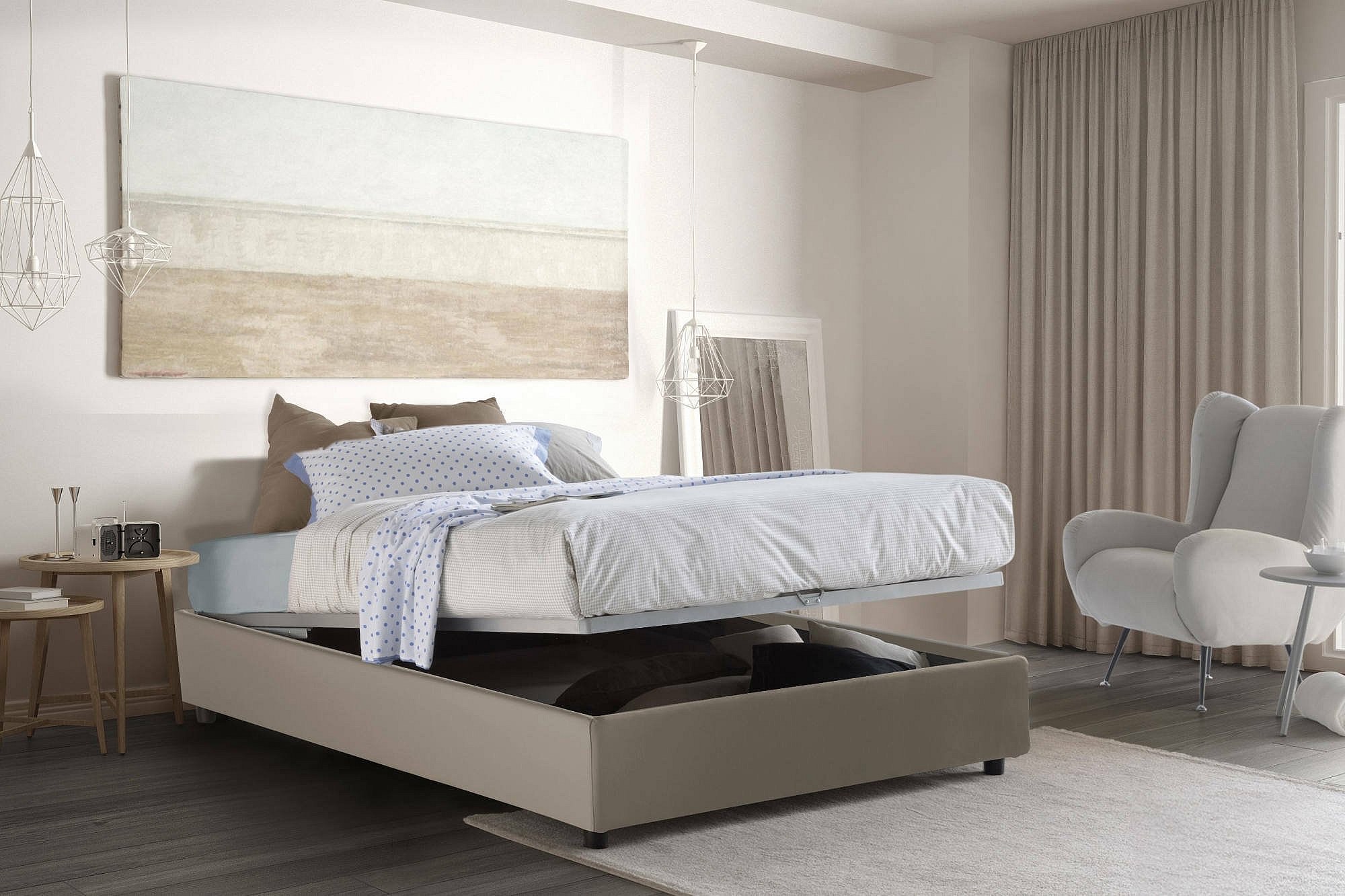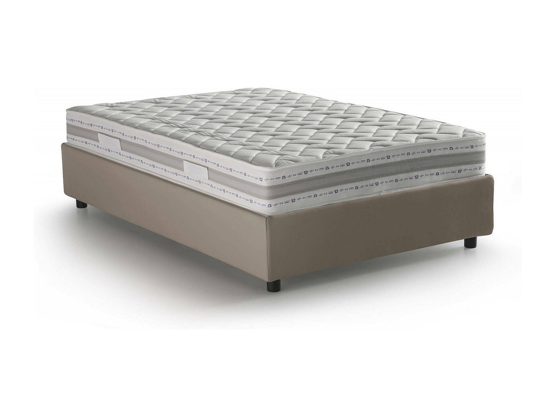 Lit double Dabbel, Lit coffre avec revêtement en éco-cuir, 100% Made in Italy, Ouverture frontale, avec matelas 120x190 cm inclus, Taupe