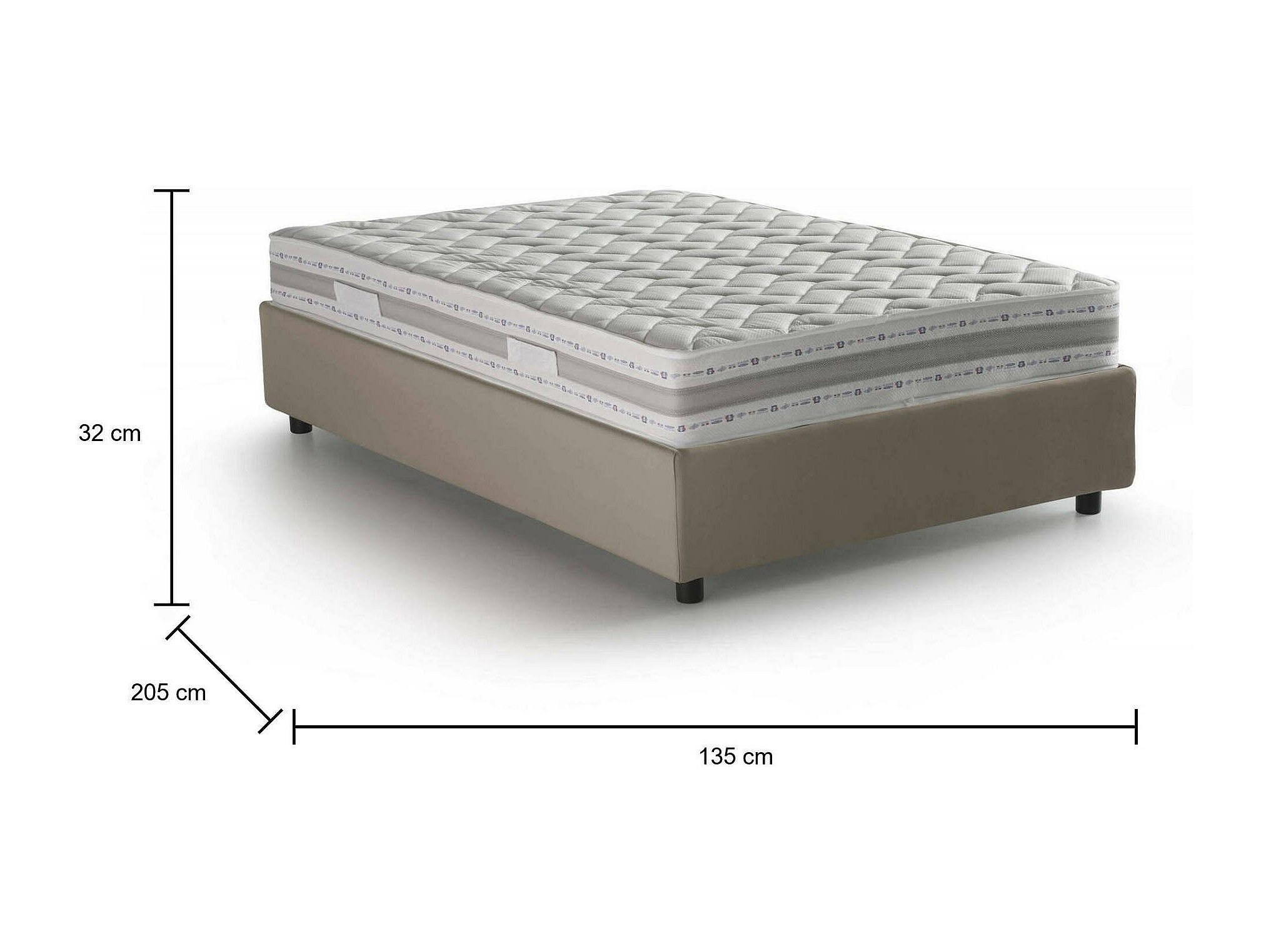 MATELAS INCLUS - Matelas orthopédique anatomique, climatisé, déhoussable, 120x190, hauteur 21 cm - Structure en mousse de polyuréthane solide h 17 cm, densité 30EP recouverte de mousse à mémoire de forme viscoélastique h 2 cm, densité 55EP en forme de losange dans la partie supérieure - Housse en tissu stretch 130 g, déhoussable et lavable en machine à 60° - Rembourrage en fibre 100% polytechno, hypoallergénique et anti-acariens des deux côtés - Equipée d'une bande tri-space respirante avec zip et anse en tissu.