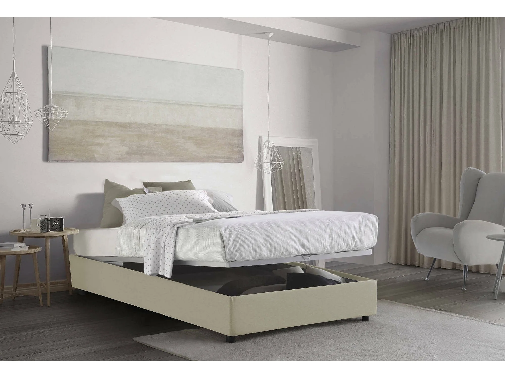 Lit double Dbamb, Lit coffre avec revêtement en tissu, 100% Made in Italy, Ouverture frontale, avec matelas 120x190 cm inclus, Beige