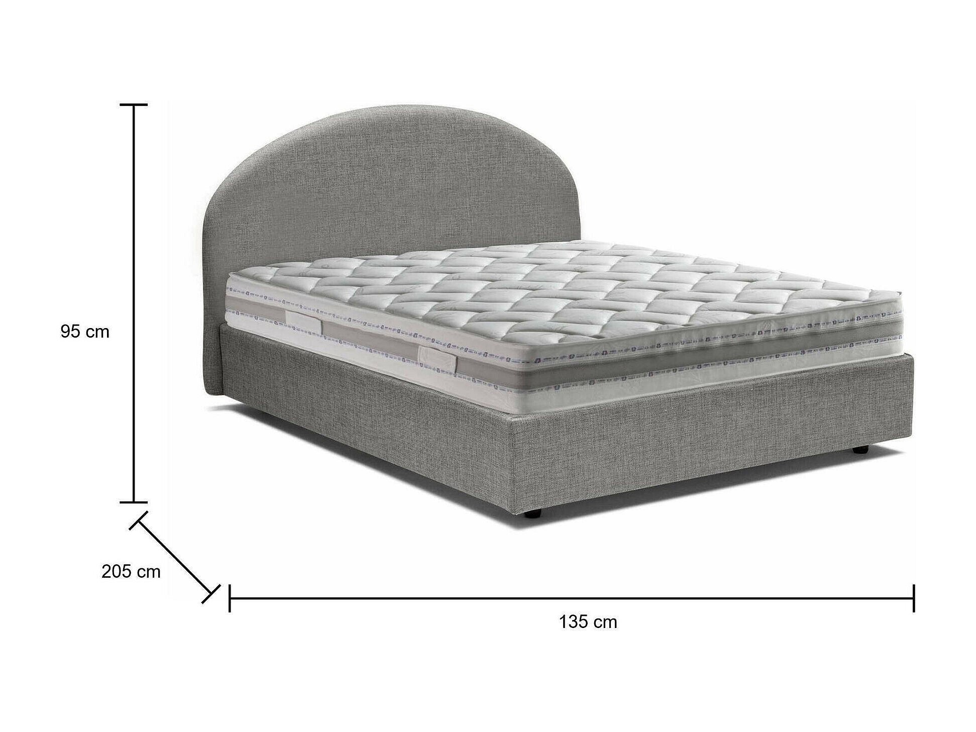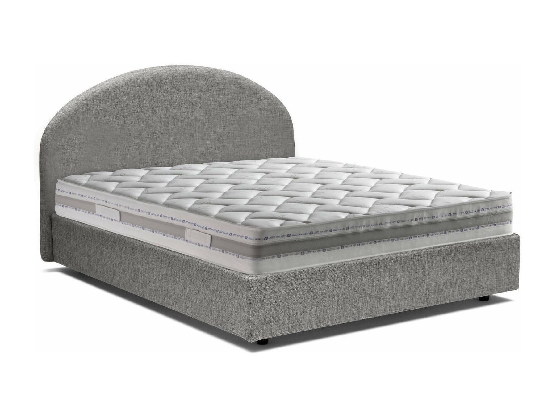 STRUCTURE - Le cadre de lit est en fibre de bois surélevé avec des pieds en ABS et est recouvert d'un tissu polyester déhoussable et lavable en machine à 30° - La tête de lit galbée demi-lune assortie en tissu est solide et résistante - Les lattes du sommier en contreplaqué sont inclus dans la structure - Mécanisme d'ouverture en fer - L'ajout de la pratique boîte peu encombrante permet au lit de se transformer en un coffre spacieux pour les draps, les oreillers et les couettes.