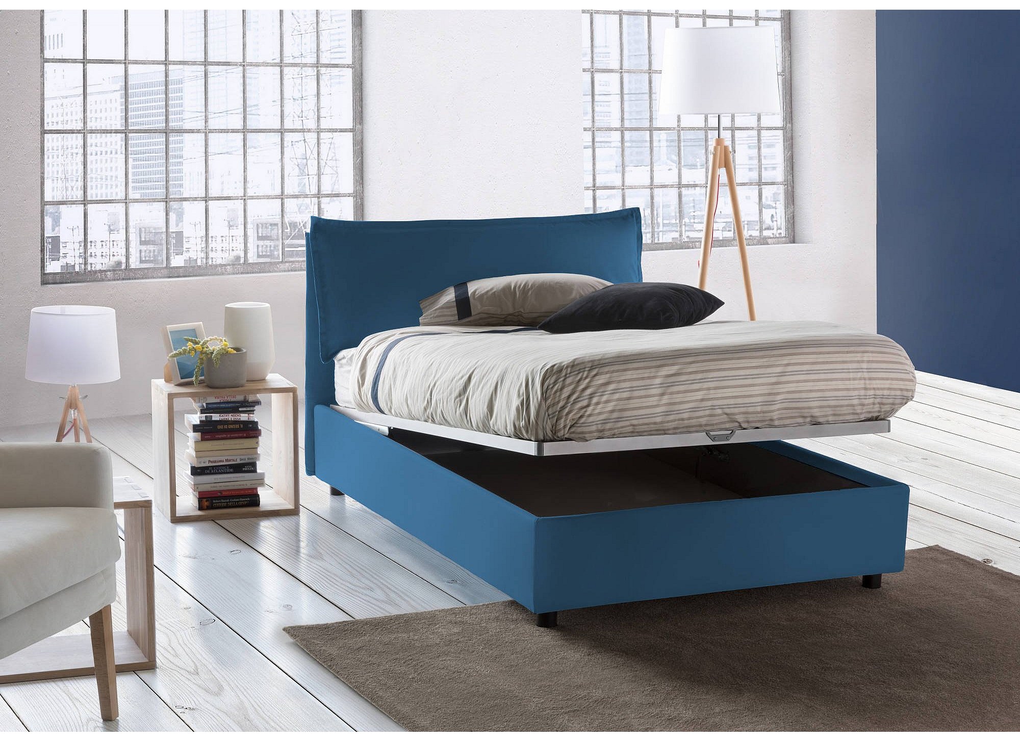 Lit double Deusebi, lit coffre avec revêtement en tissu, 100% Made in Italy, ouverture frontale, adapté pour matelas 120x190 cm, bleu