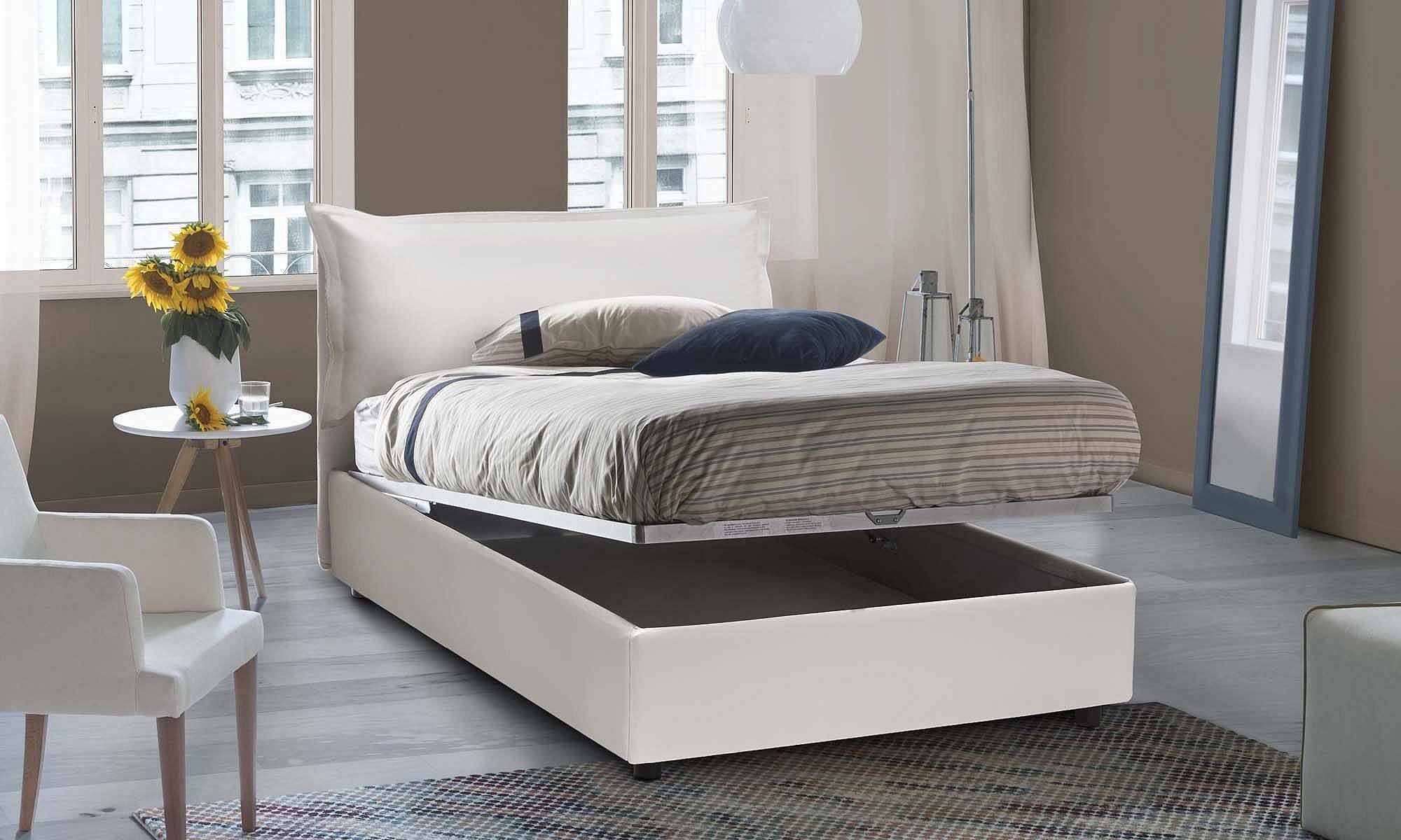 Lit double Dlemin, Lit coffre avec revêtement en éco-cuir, 100% Made in Italy, Ouverture frontale, adapté pour matelas 120x200 cm, Blanc