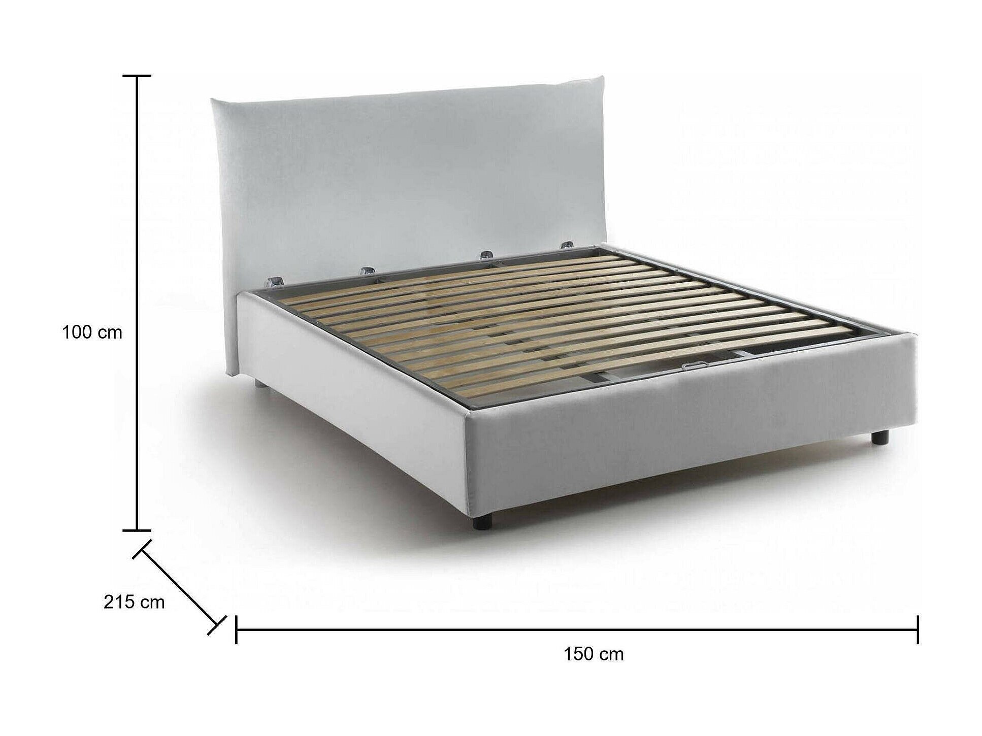 MESURES ET OUVERTURE - Dimensions du lit: Longueur 215 x Largeur 150 x Hauteur 100 cm (hauteur du réseau depuis le sol: 32cm) - Ouverture du caisson: avant - Profondeur du caisson: 20 cm environ - Hauteur des pieds: 10 cm environ - Fond de le lit d'une épaisseur de 1 cm - Convient aux matelas mesurant: 120x190 cm - Matelas non inclus