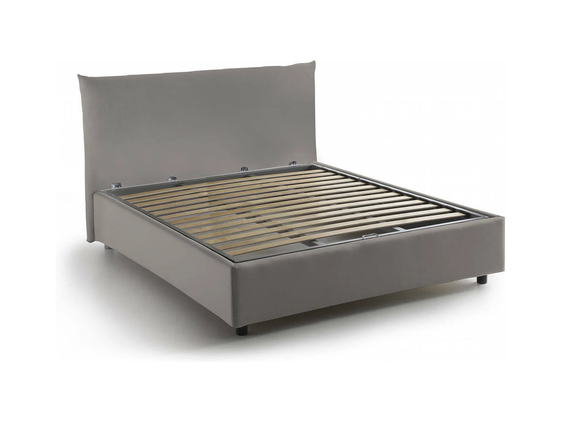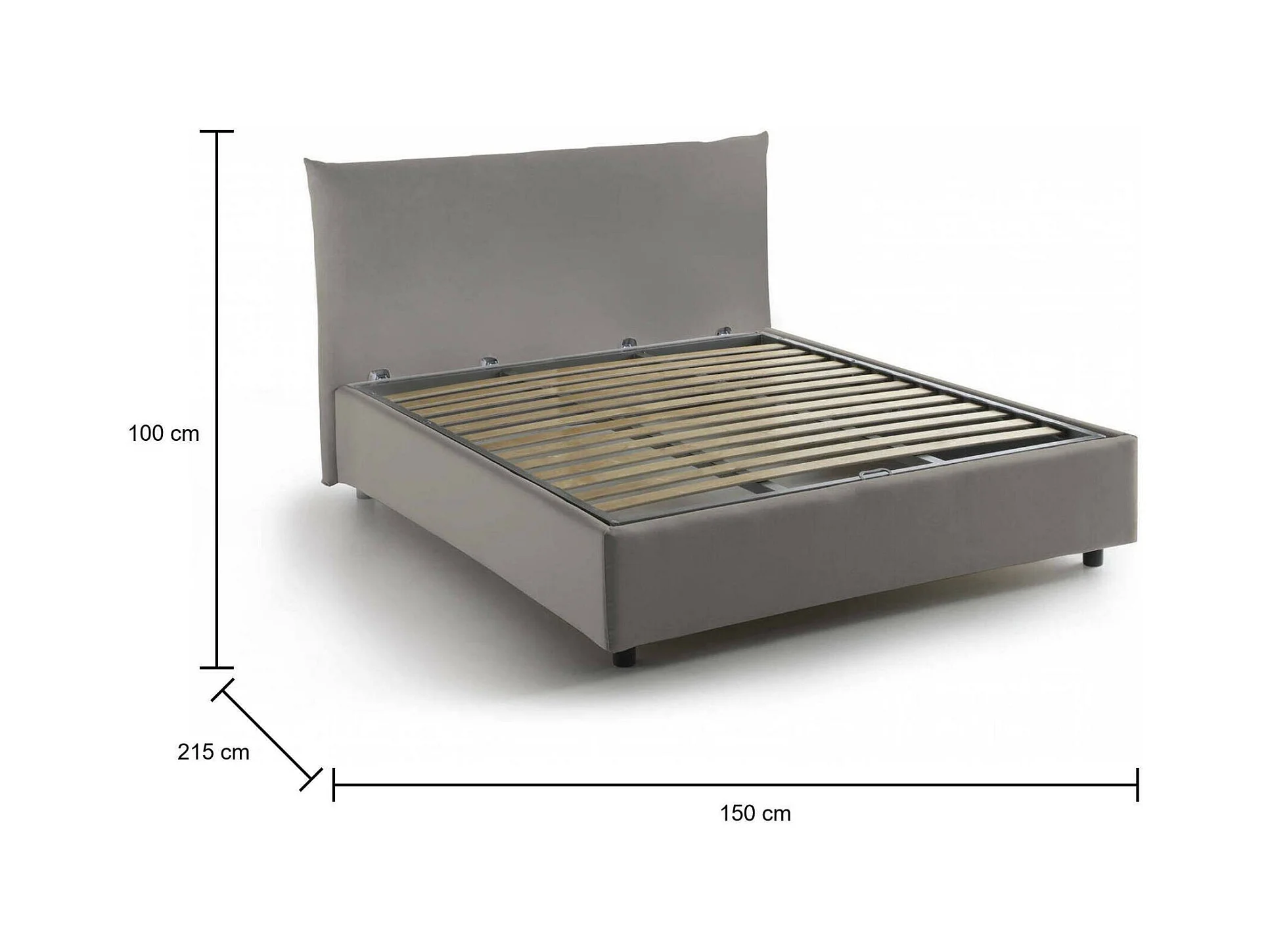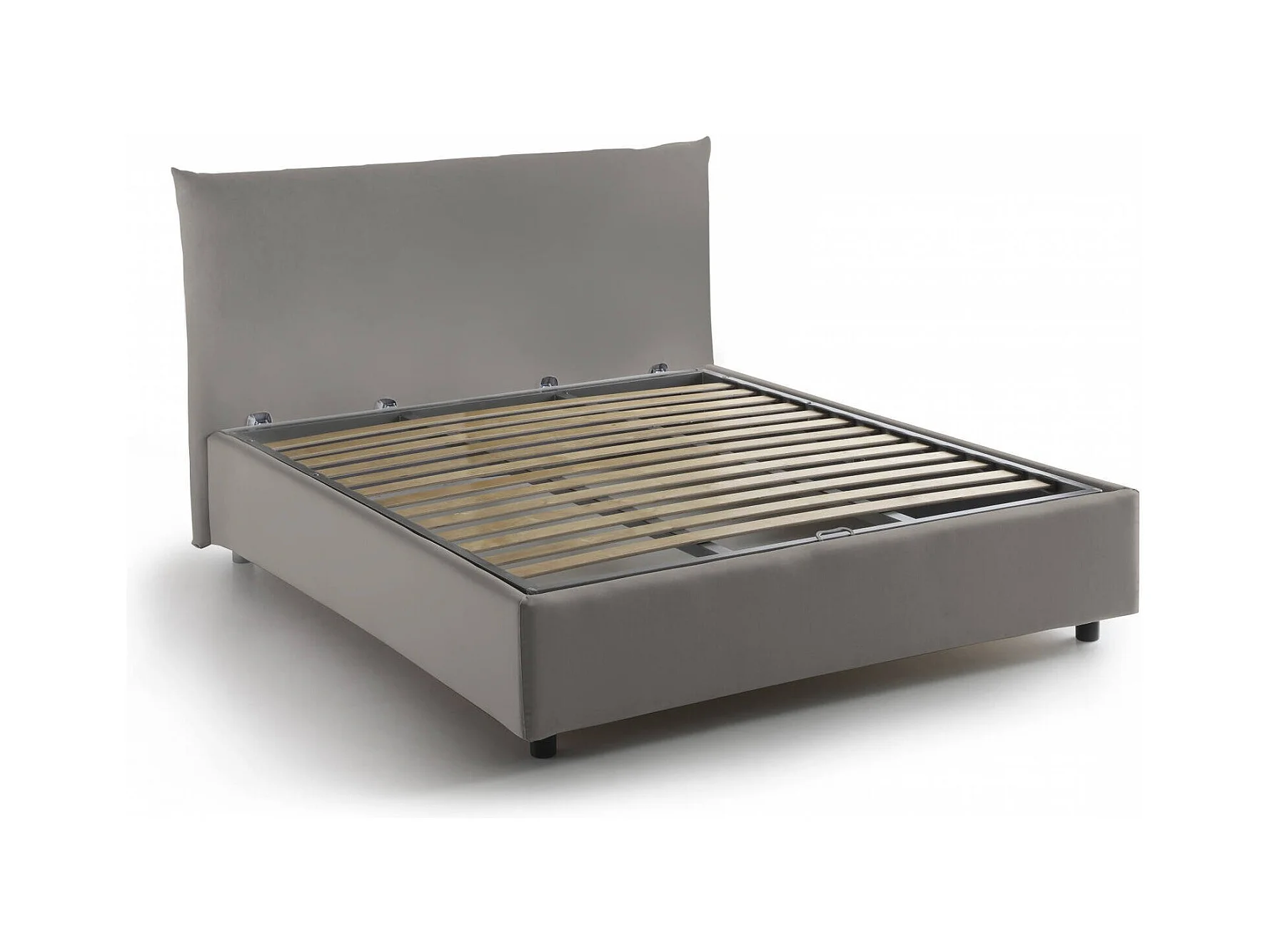 Lit queen size Dboe, lit coffre avec revêtement en tissu, 100% Made in Italy, ouverture frontale, adapté pour matelas 120x190 cm, gris tourterelle