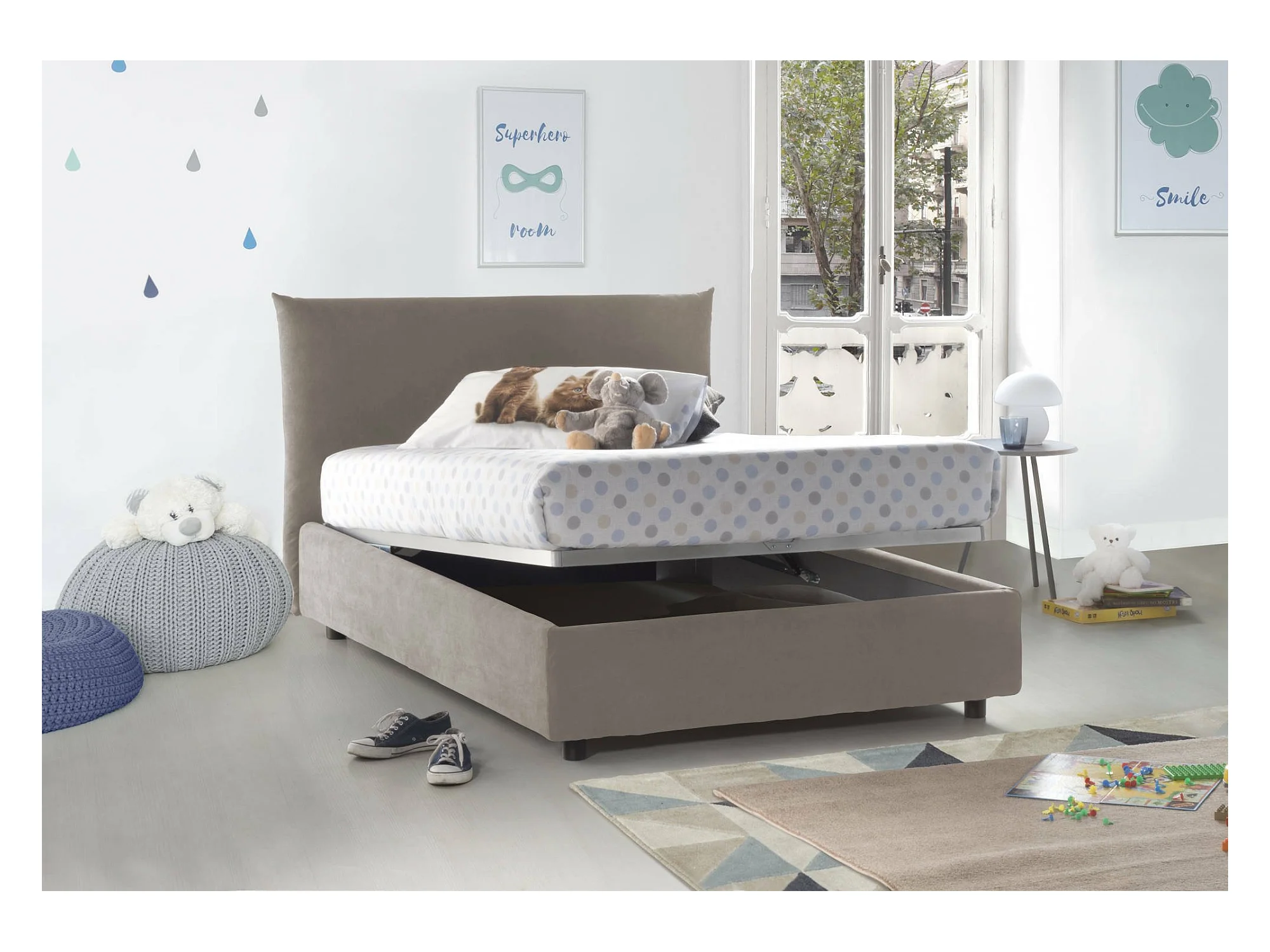 Lit double Dbamb, Lit coffre avec revêtement en tissu, 100% Made in Italy, Ouverture frontale, avec matelas 120x190 cm inclus, Taupe