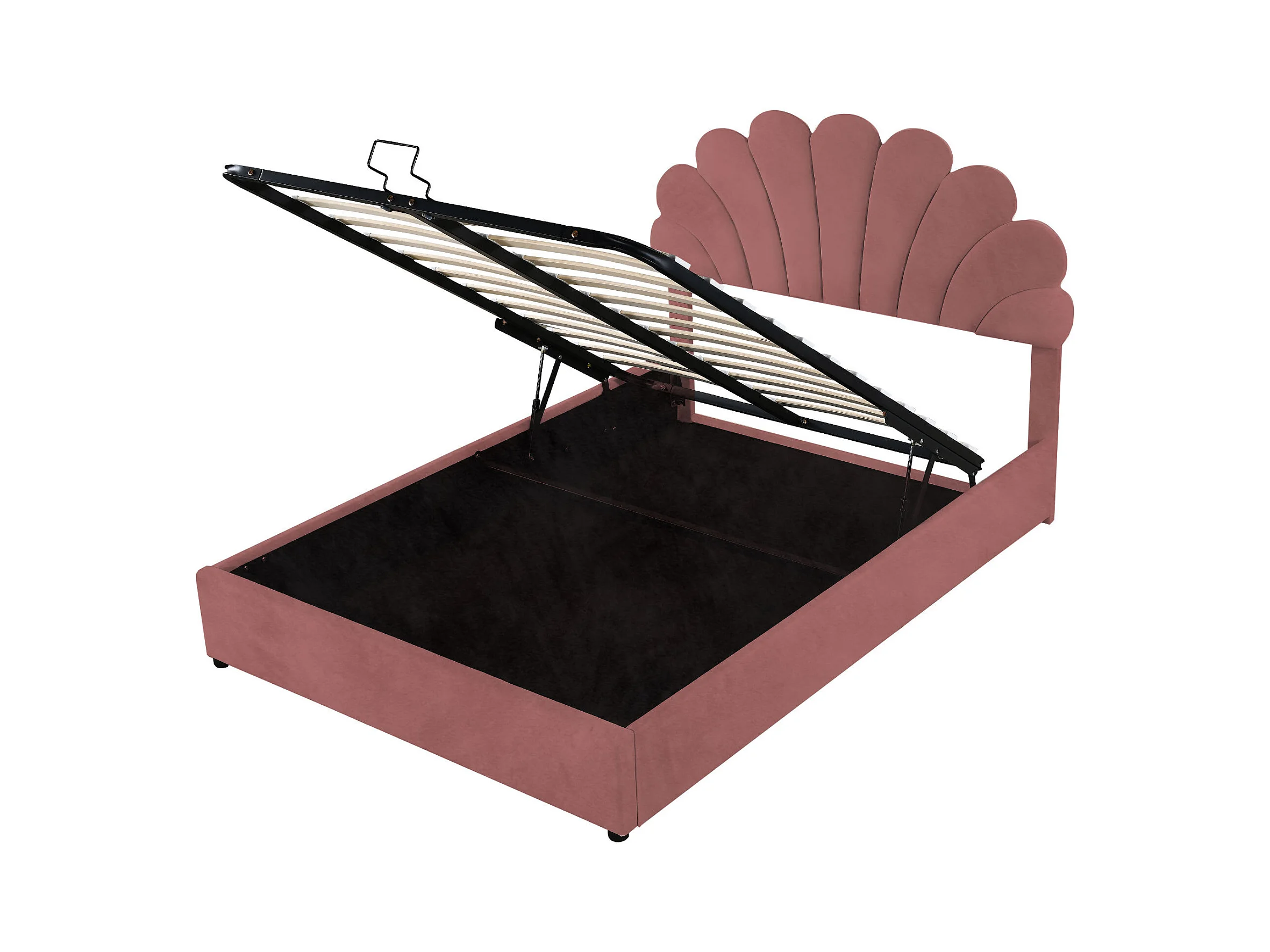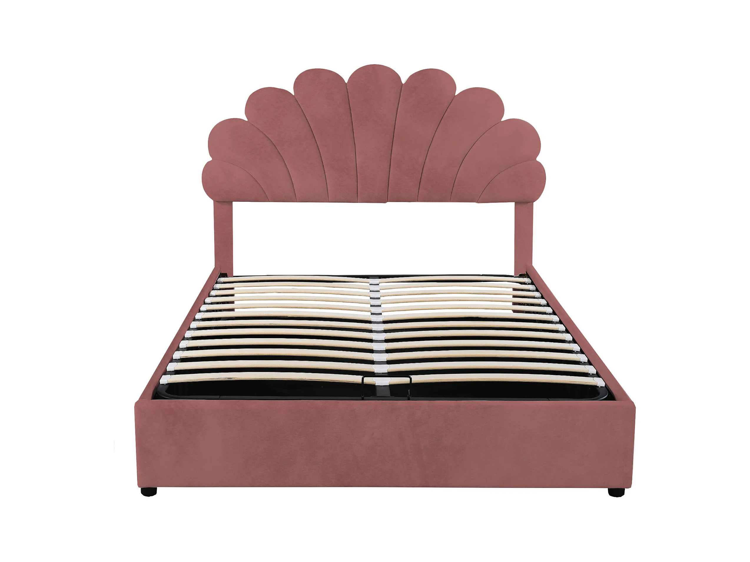 Lit coffre 140 x 200 cm - velours rose - Lit adulte avec tête de lit réglable et sommier à lattes - sans matelas