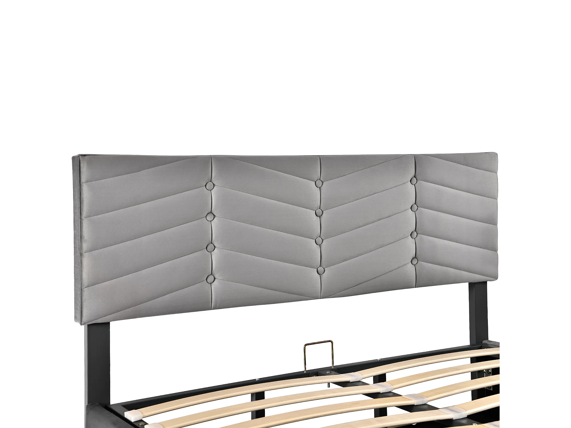 Lit coffre 140x190 cm avec sommier à lattes - tête de lit capitonnée en velours - gris (sans matelas)
