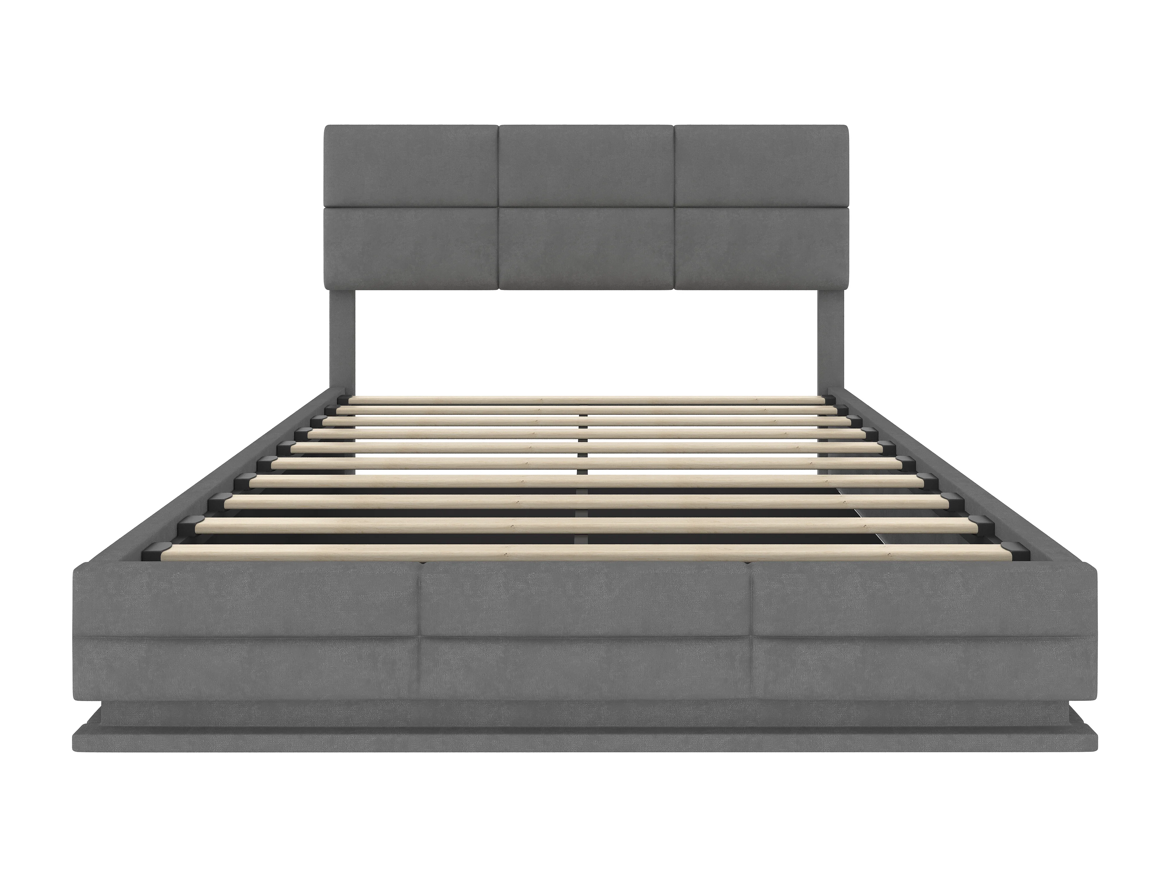 Lit coffre 140x200 cm avec LED et port USB, tête de lit réglable - velours gris (sans matelas)