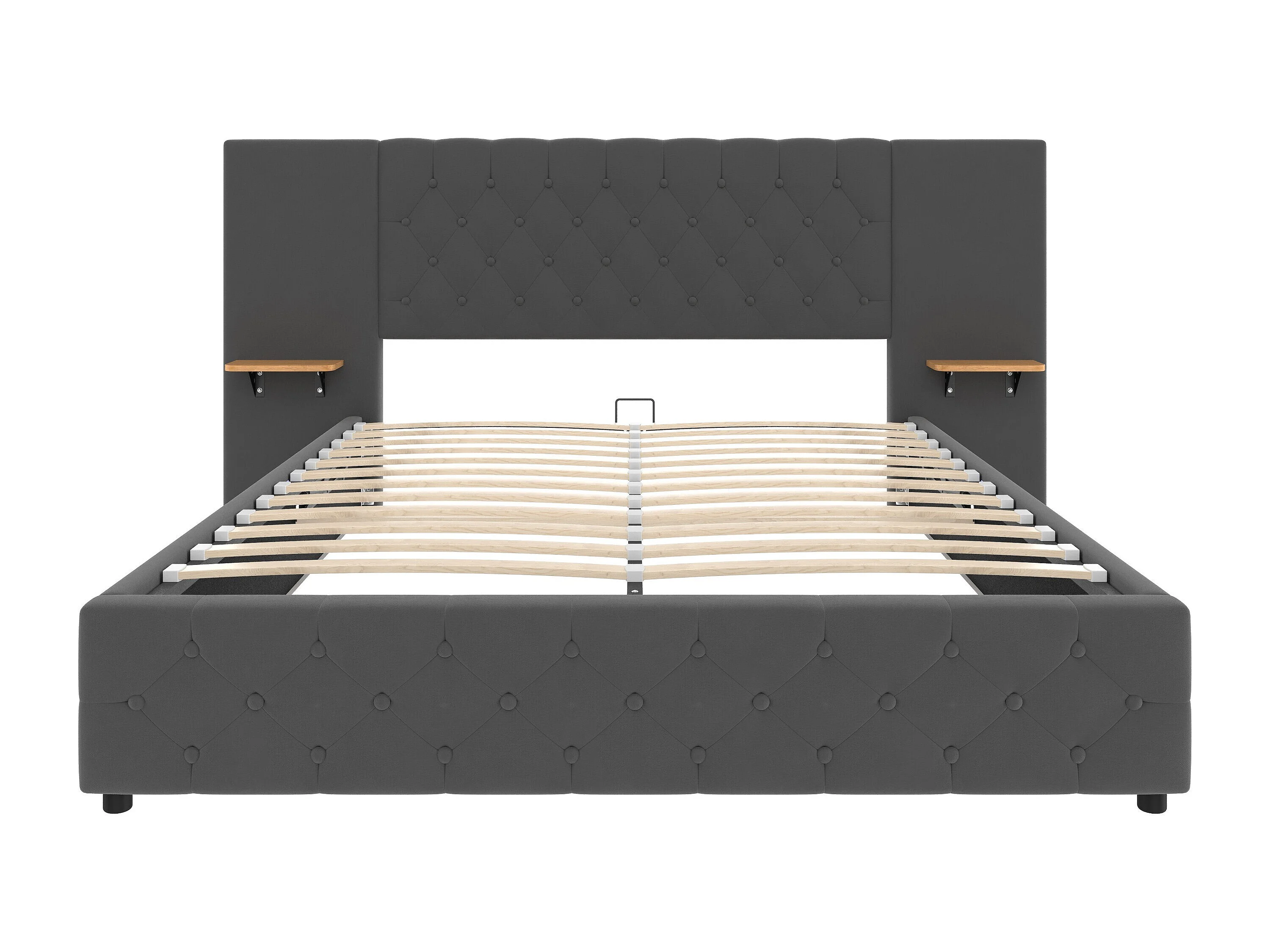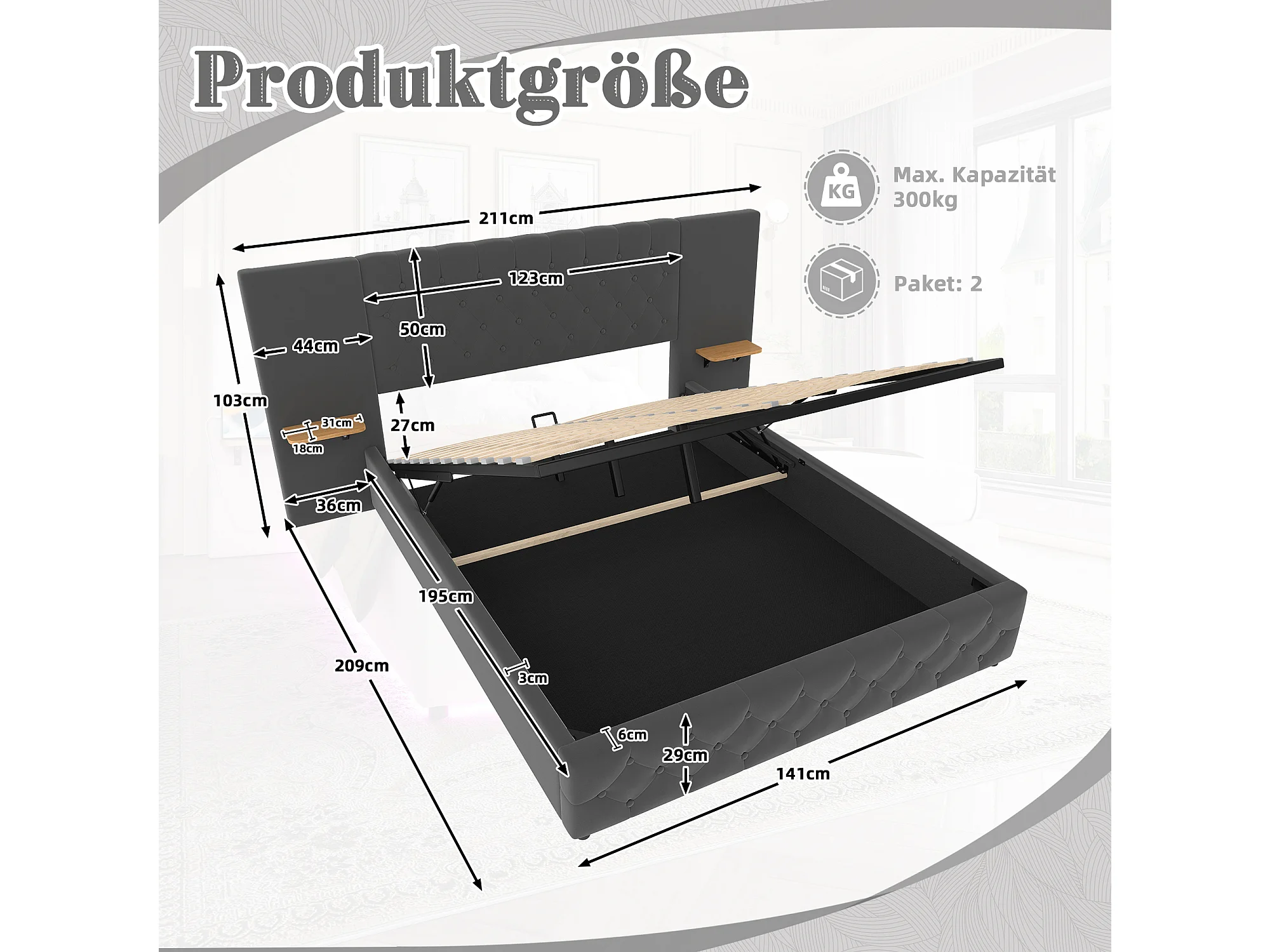 Lit coffre 140x200 cm - avec LED et port USB - velours gris - sans matelas