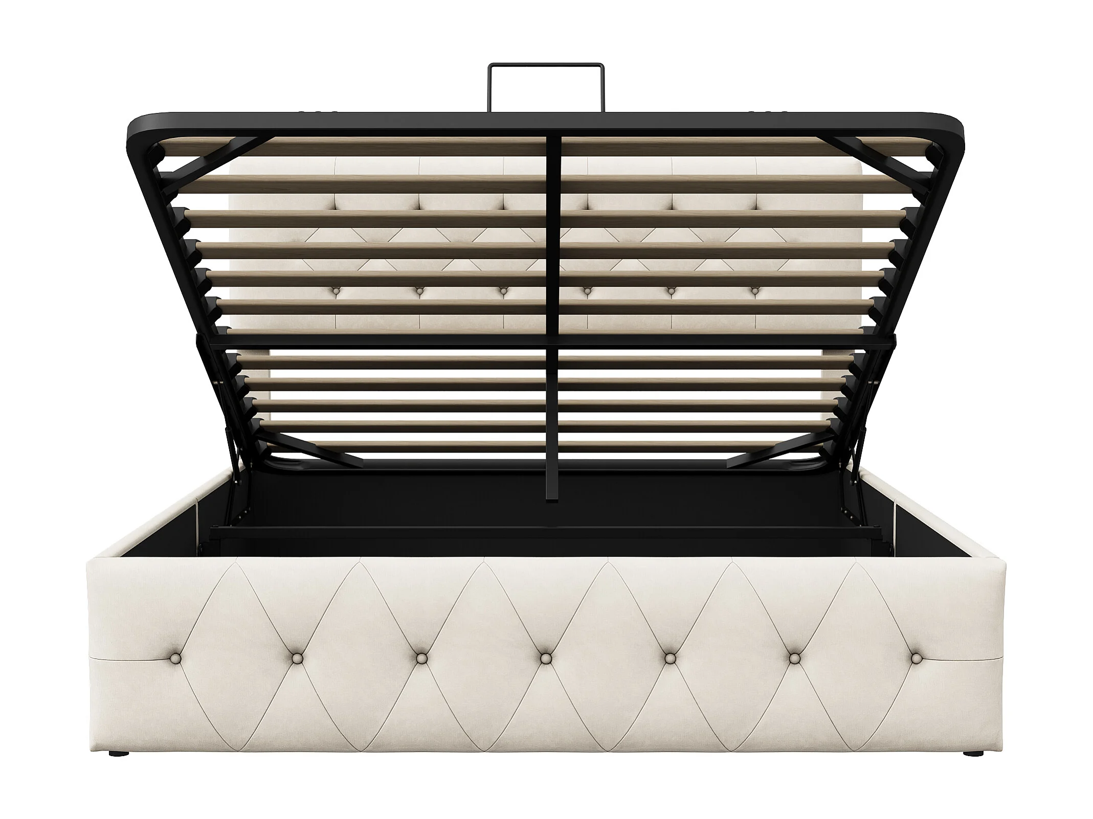 Lit 140x200 Cm, Lit Coffre Avec Rangement, Cadre De Lit Avec Tête De Lit, Velours, Beige