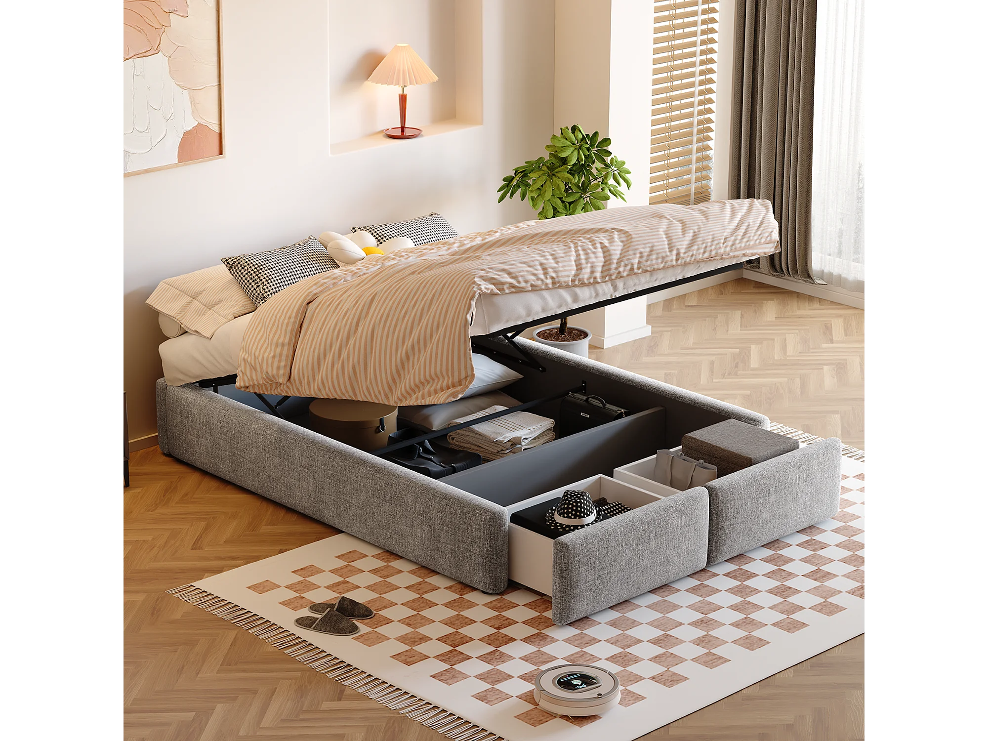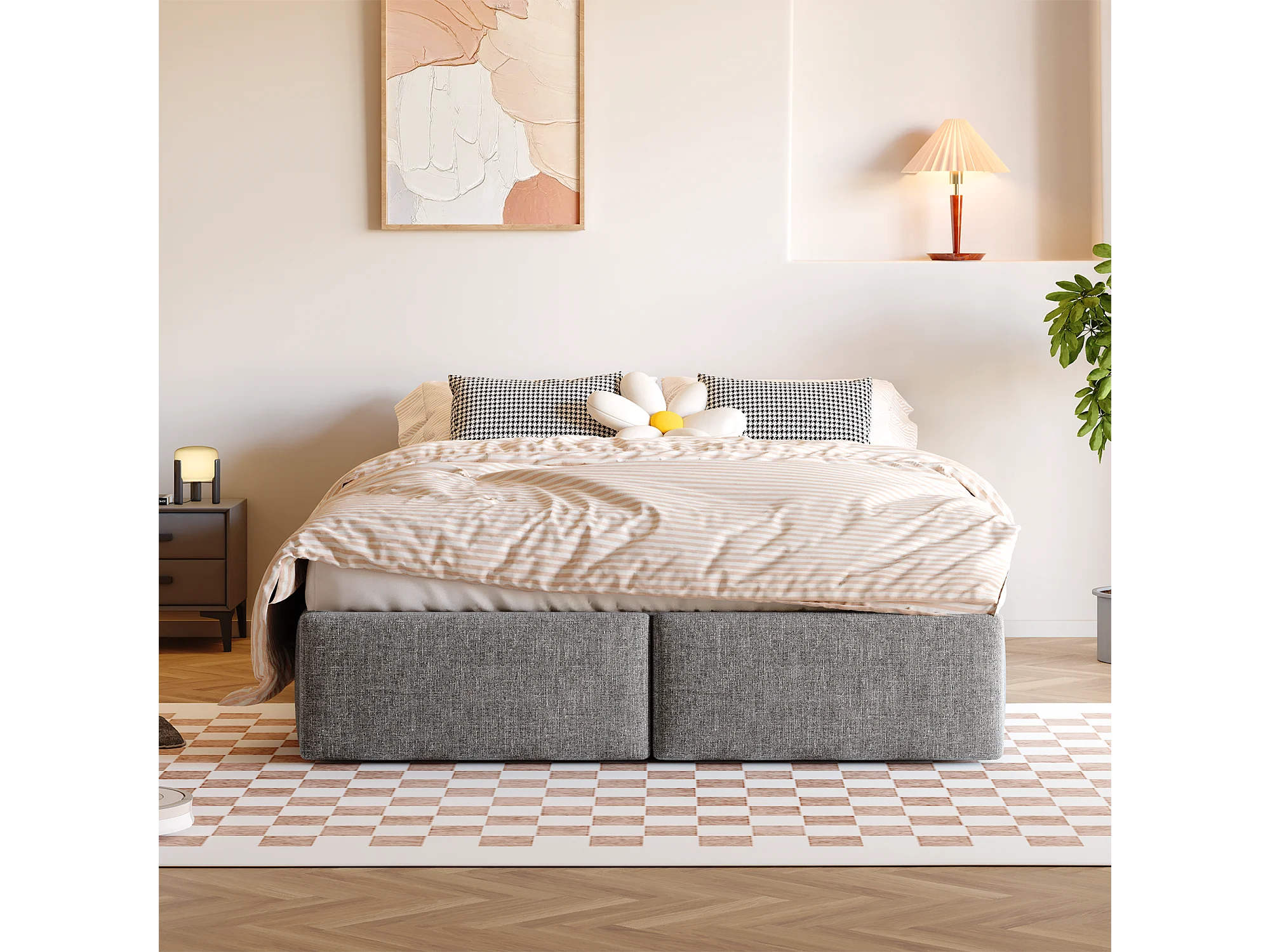 Lit coffre 140x200cm, lit adulte avec 2 tiroirs sans tête de lit, sans matelas, gris