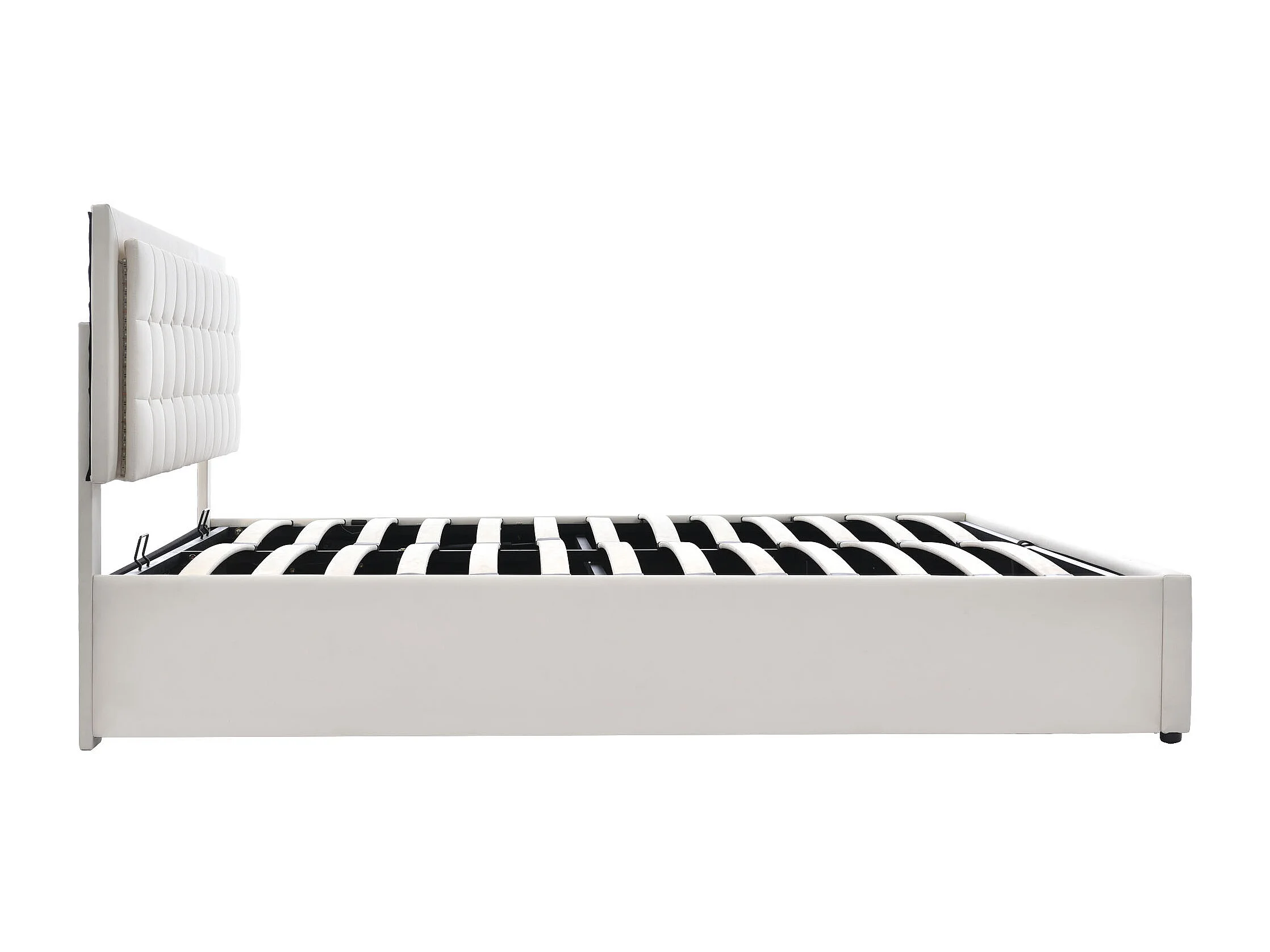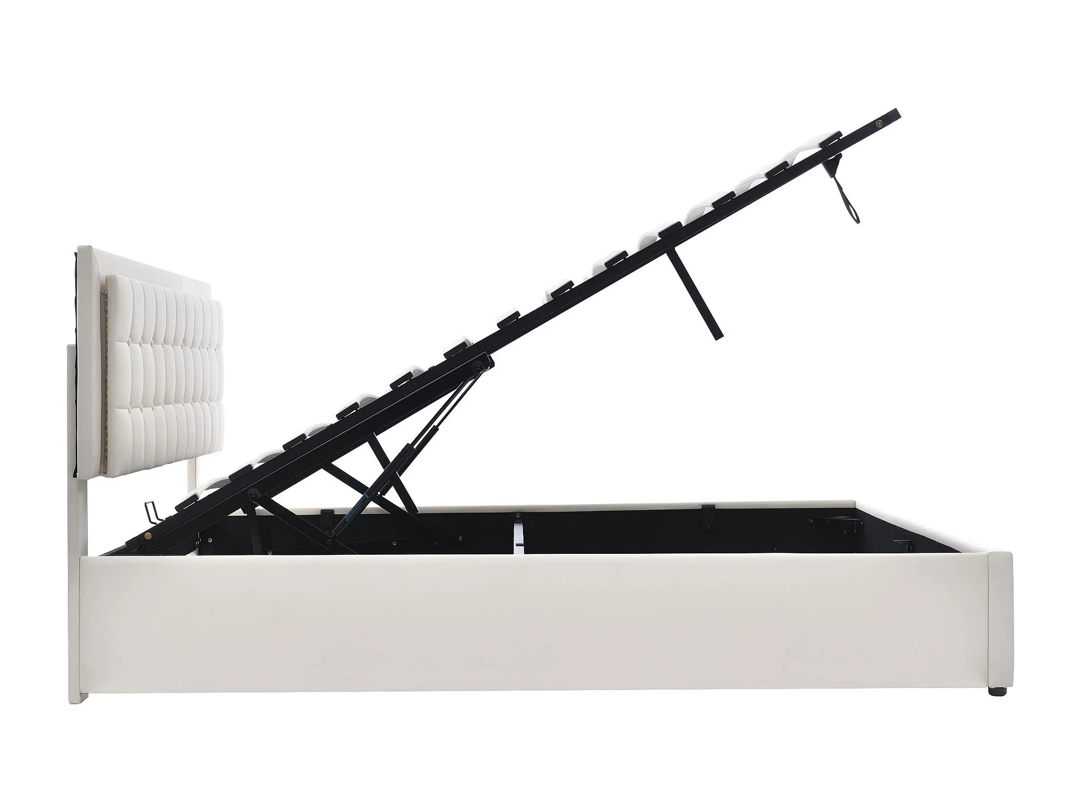 Lit coffre 145×206cm avec tête de lit lampe de lecture USB espace de rangement - Blanc - (Avec matelas)