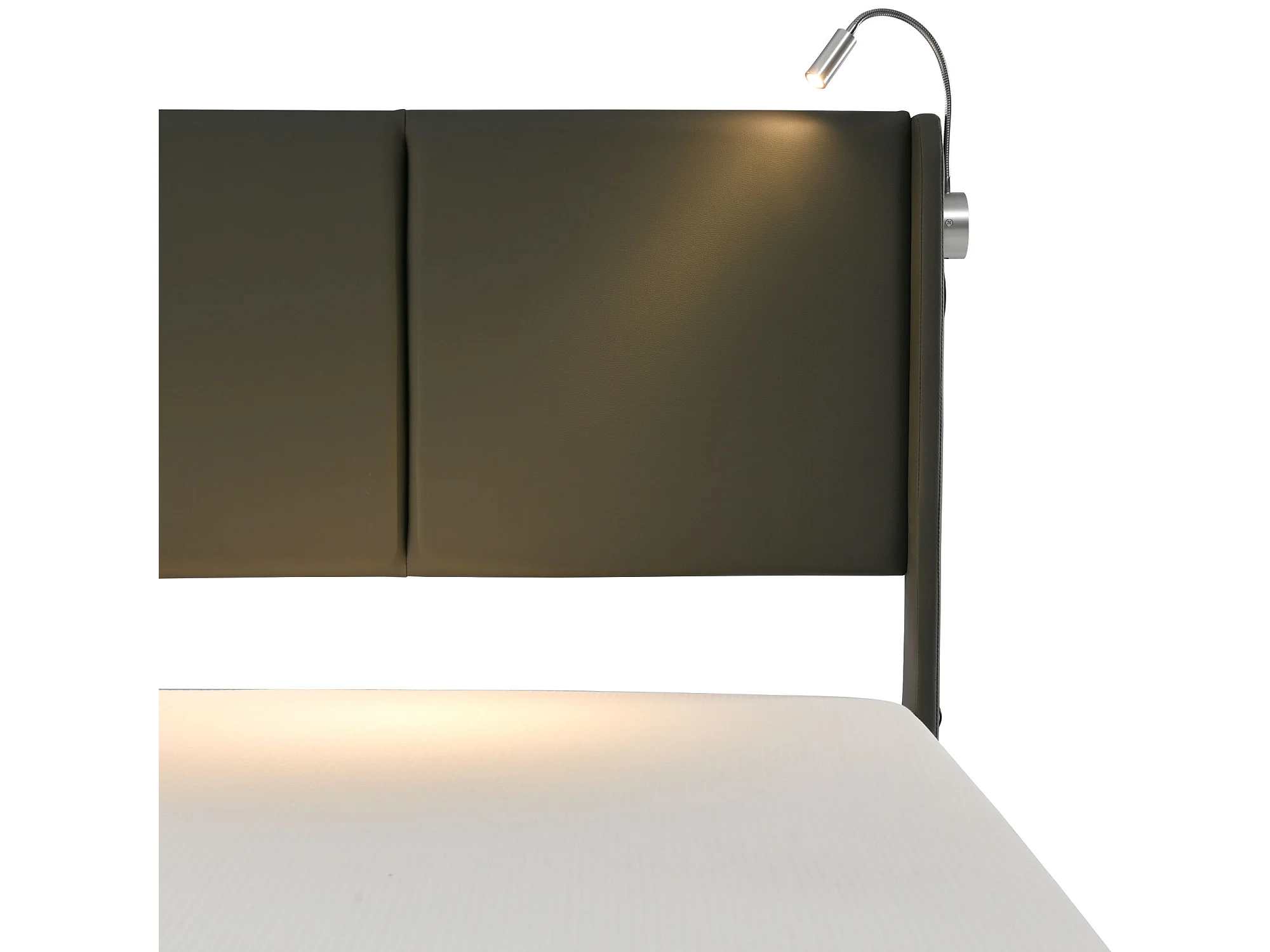 Lit coffre 145×206cm avec tête de lit lampe de lecture USB espace de rangement - PU - Gris - (Avec matelas)