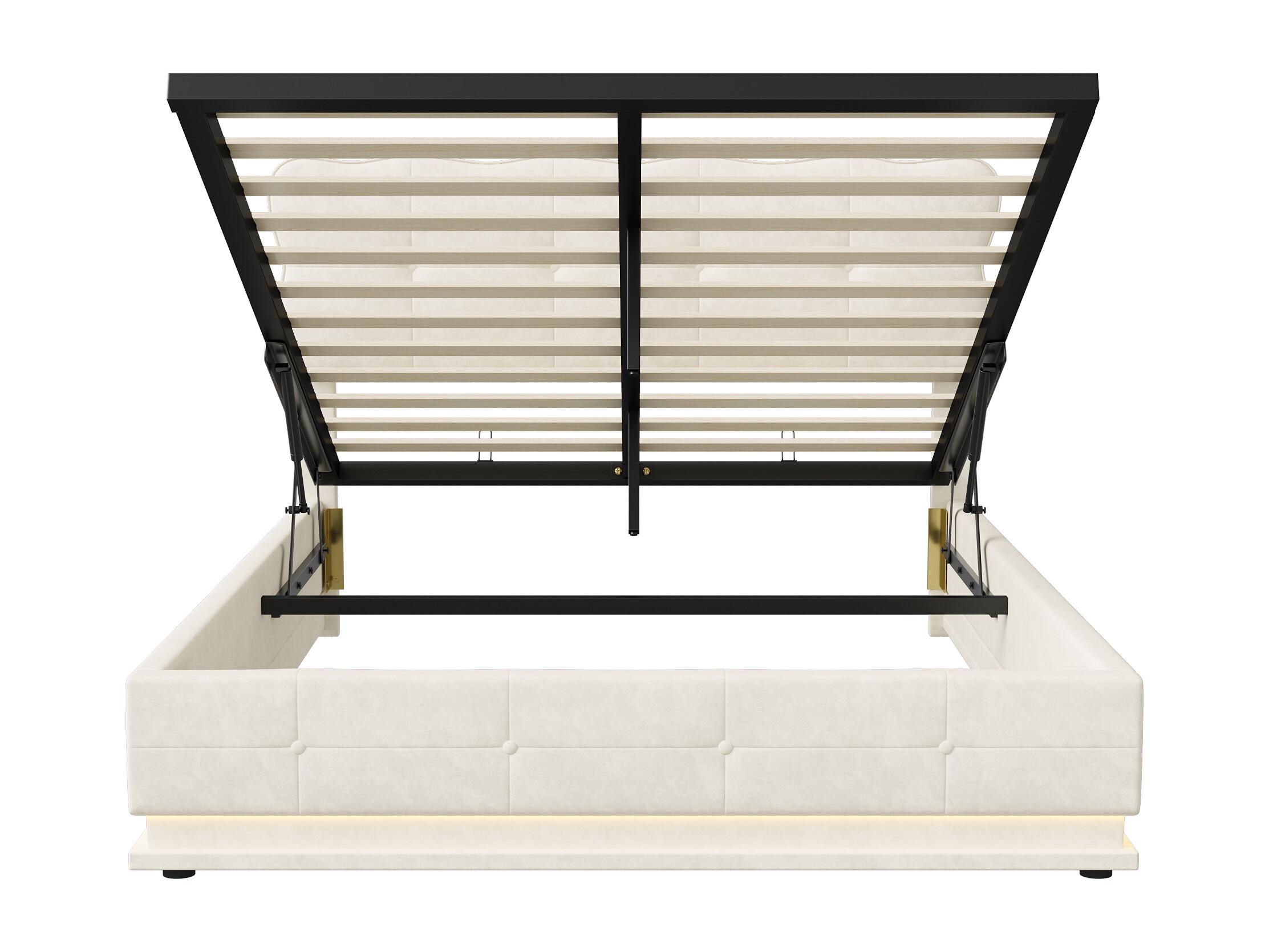 Lit Coffre 160x200 Avec Éclairage LED, Lit Capitonné Avec Sommier à Lattes, Velours, Beige