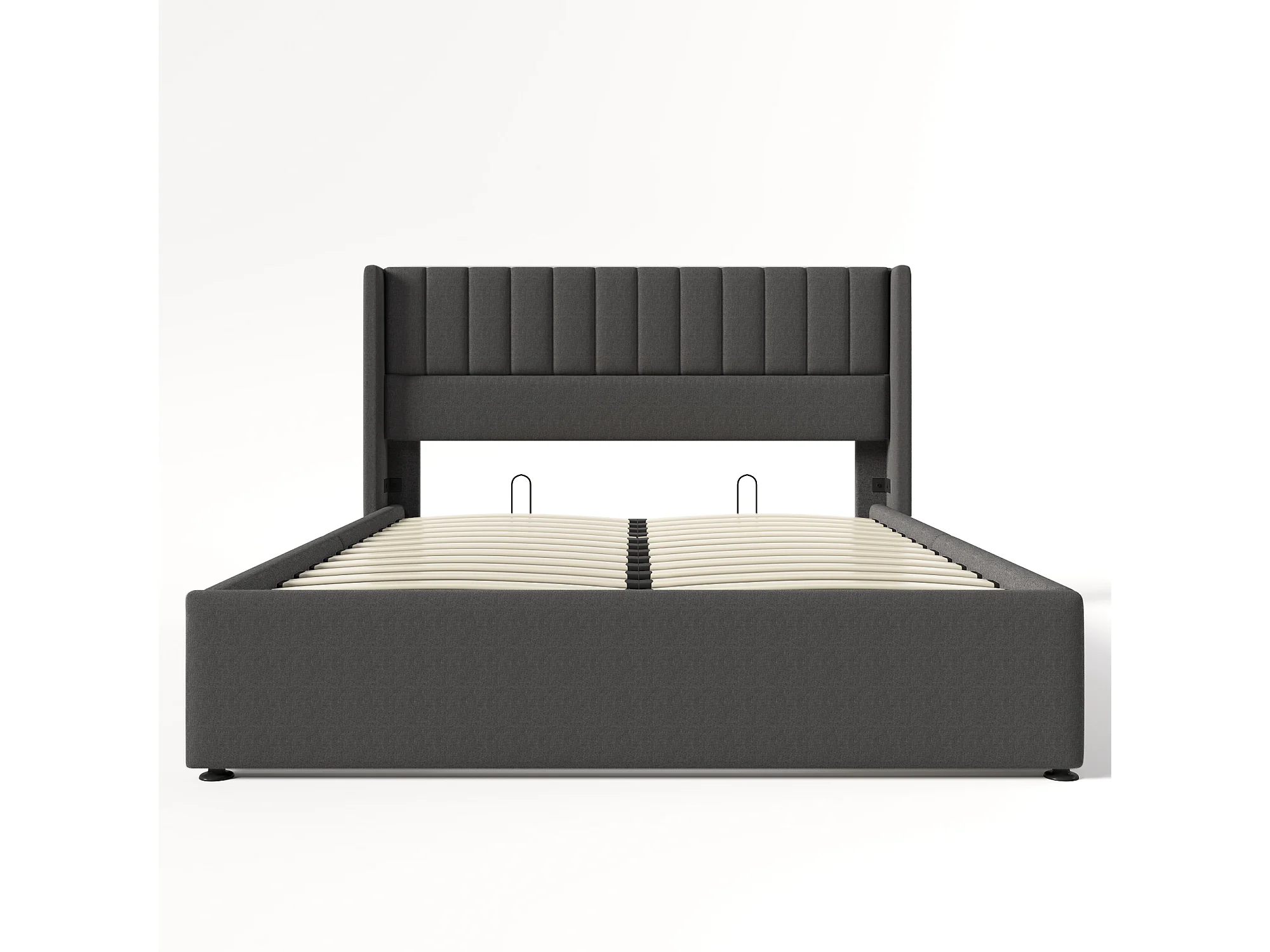 Lit coffre 160x200 cm - Lit adulte avec tête de lit - gris lin - matelas inclus