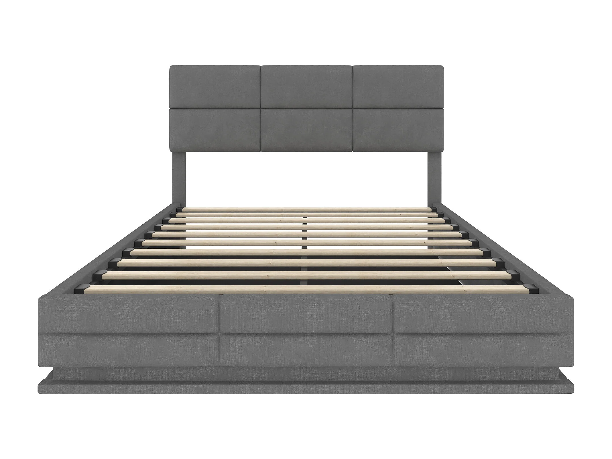 Lit coffre 160x200 cm - Lit adulte avec tête de lit réglable, lumière LED et port USB - velours - gris foncé - sans matelas