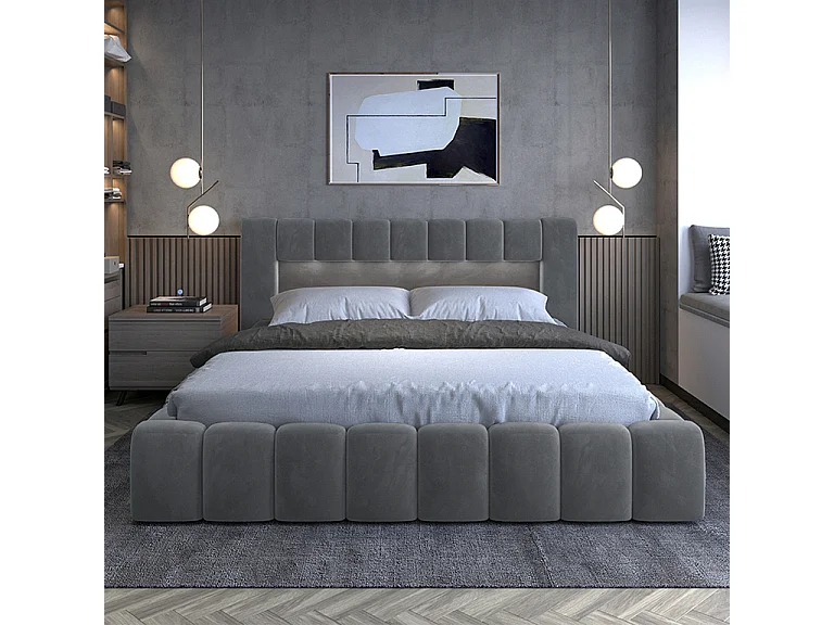 Lit coffre 160x200 sommier inclus Auria Velours Gris