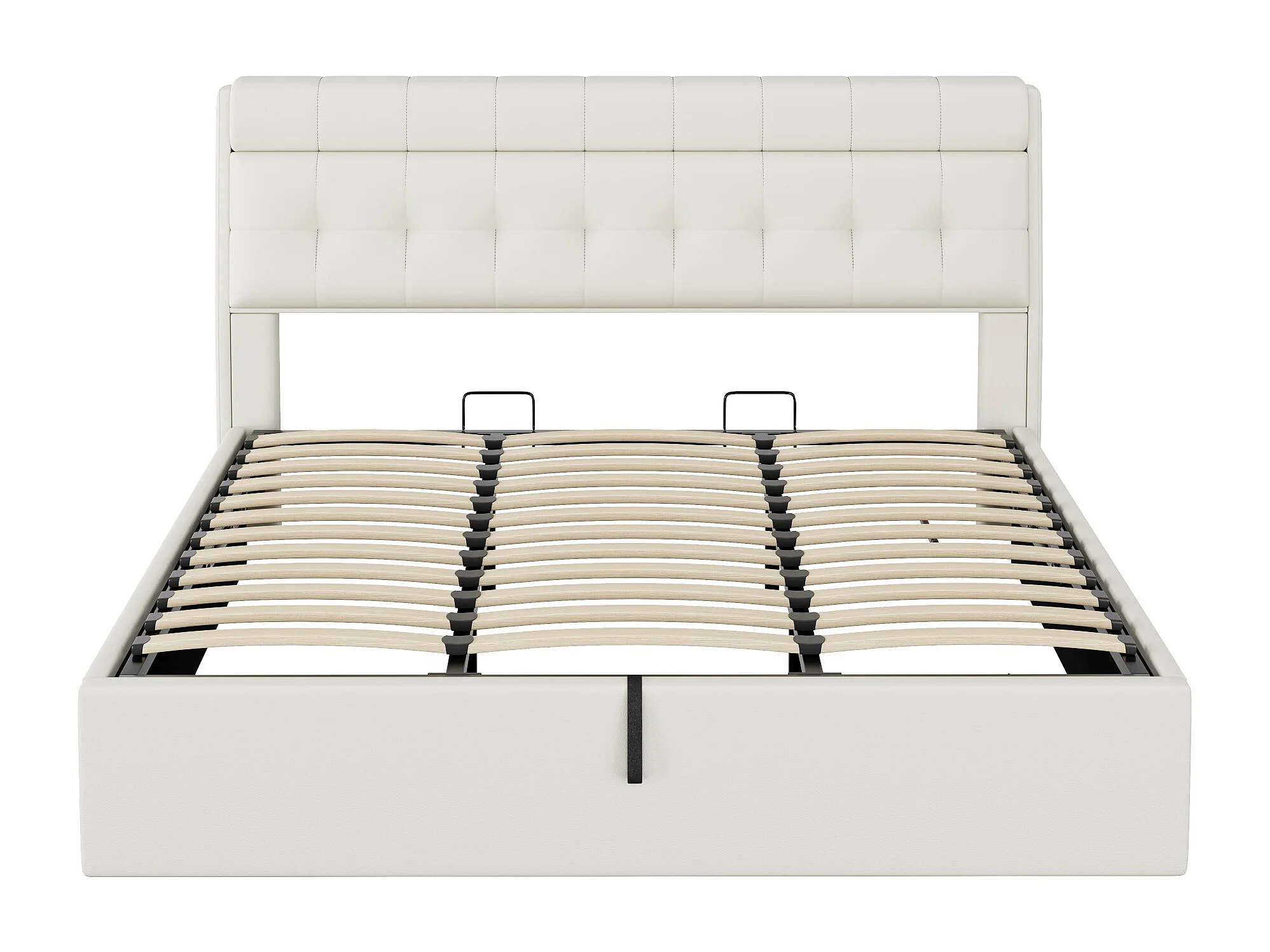 Lit coffre 180x200 cm - en similicuir - tête de lit avec rangement - Blanc