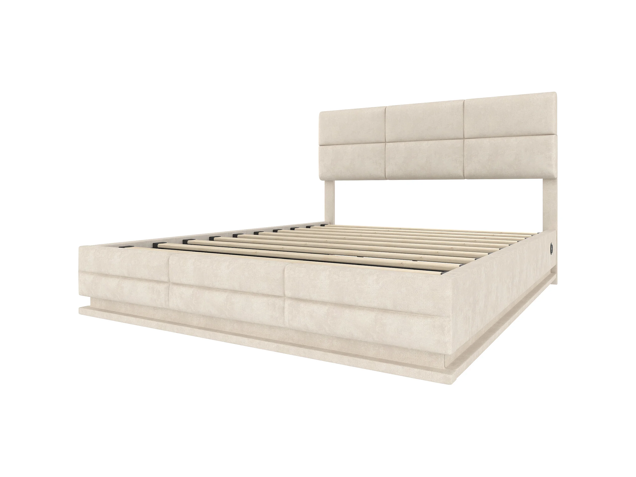 Lit coffre 180x200 cm - Lit adulte avec tête de lit réglable, lumière LED et port USB - velours - beige - sans matelas