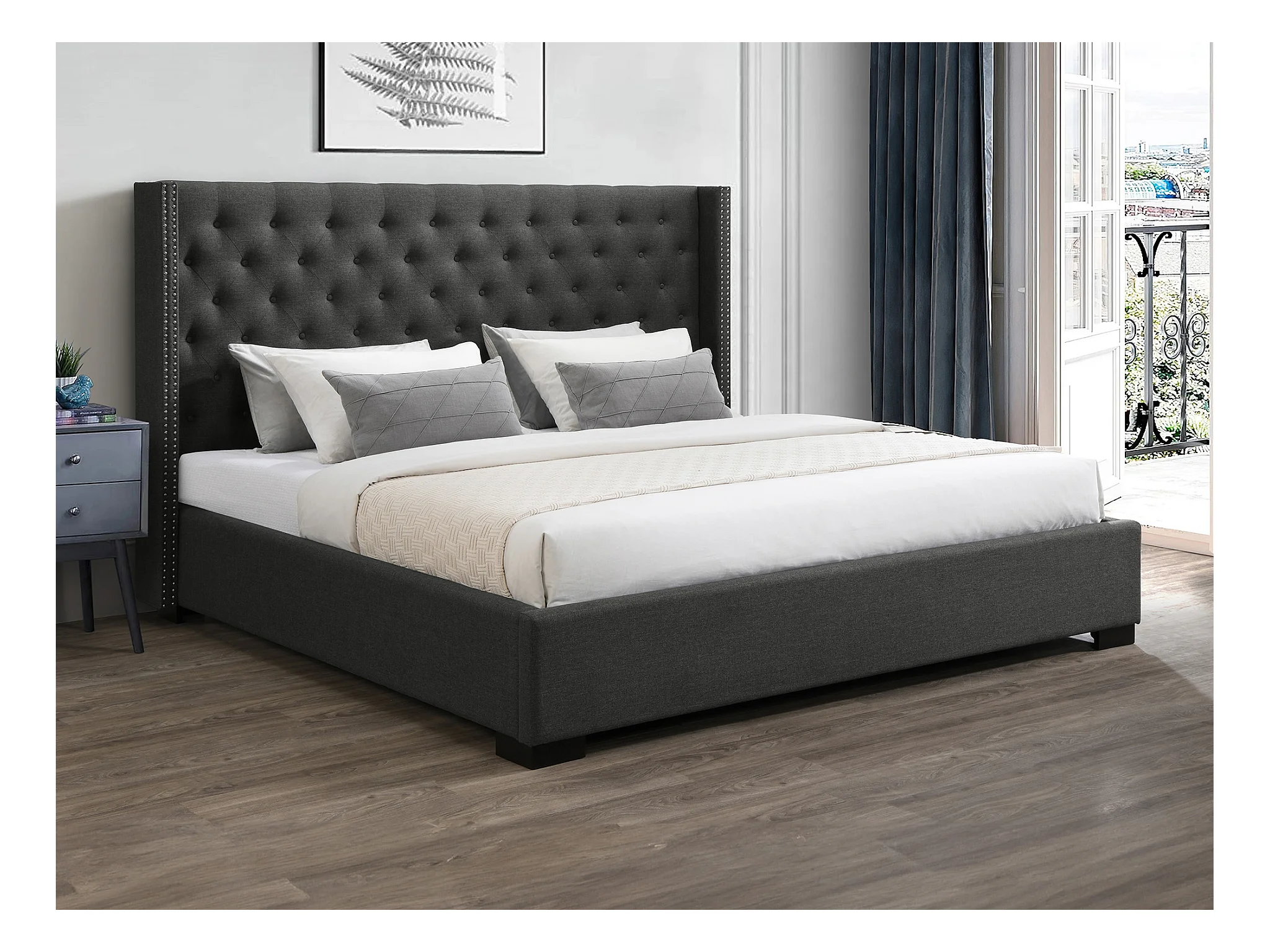 Lit coffre 200 x 200 cm avec tête de lit capitonnée - Tissu - Gris + Matelas - MASSIMO