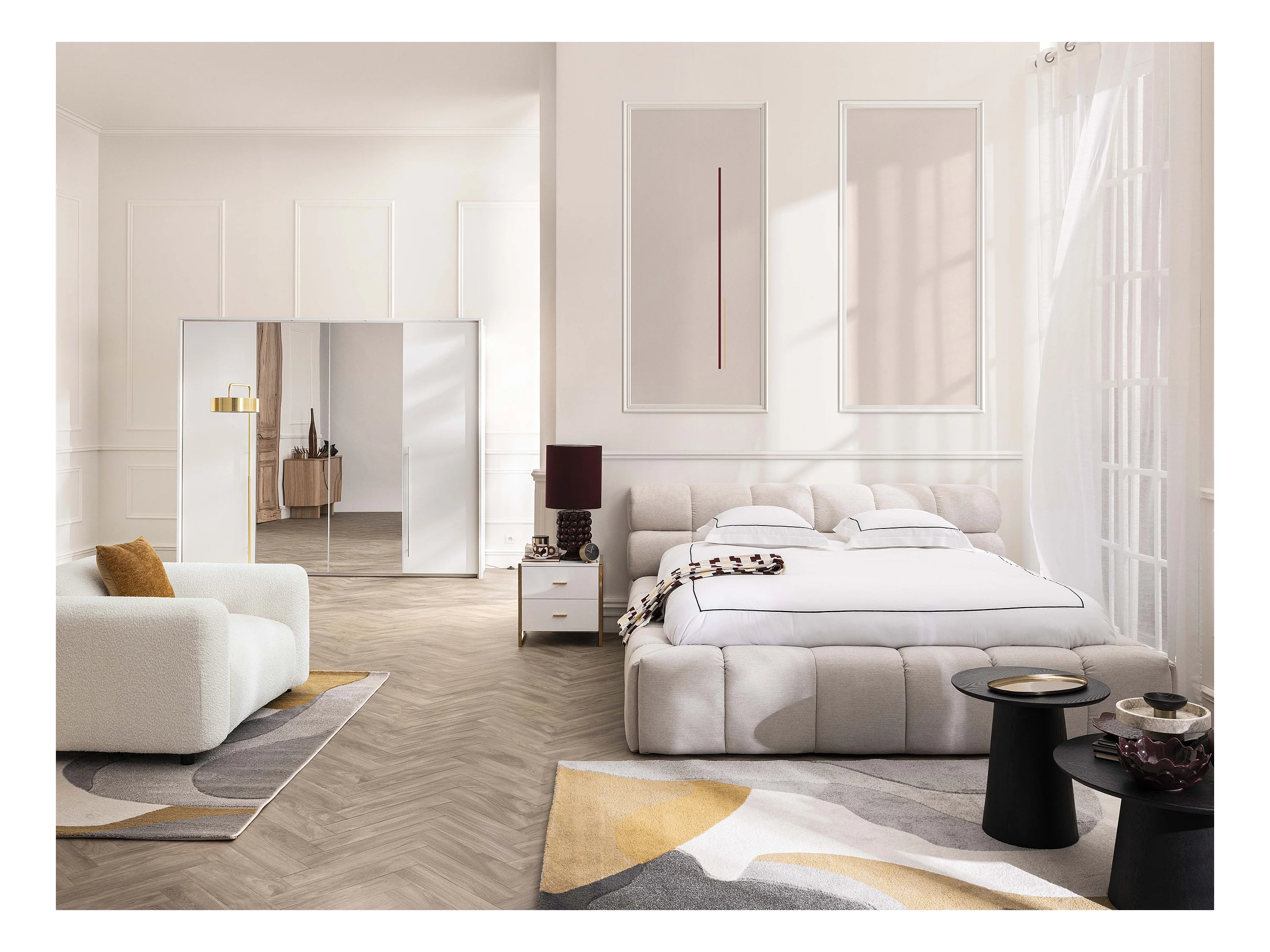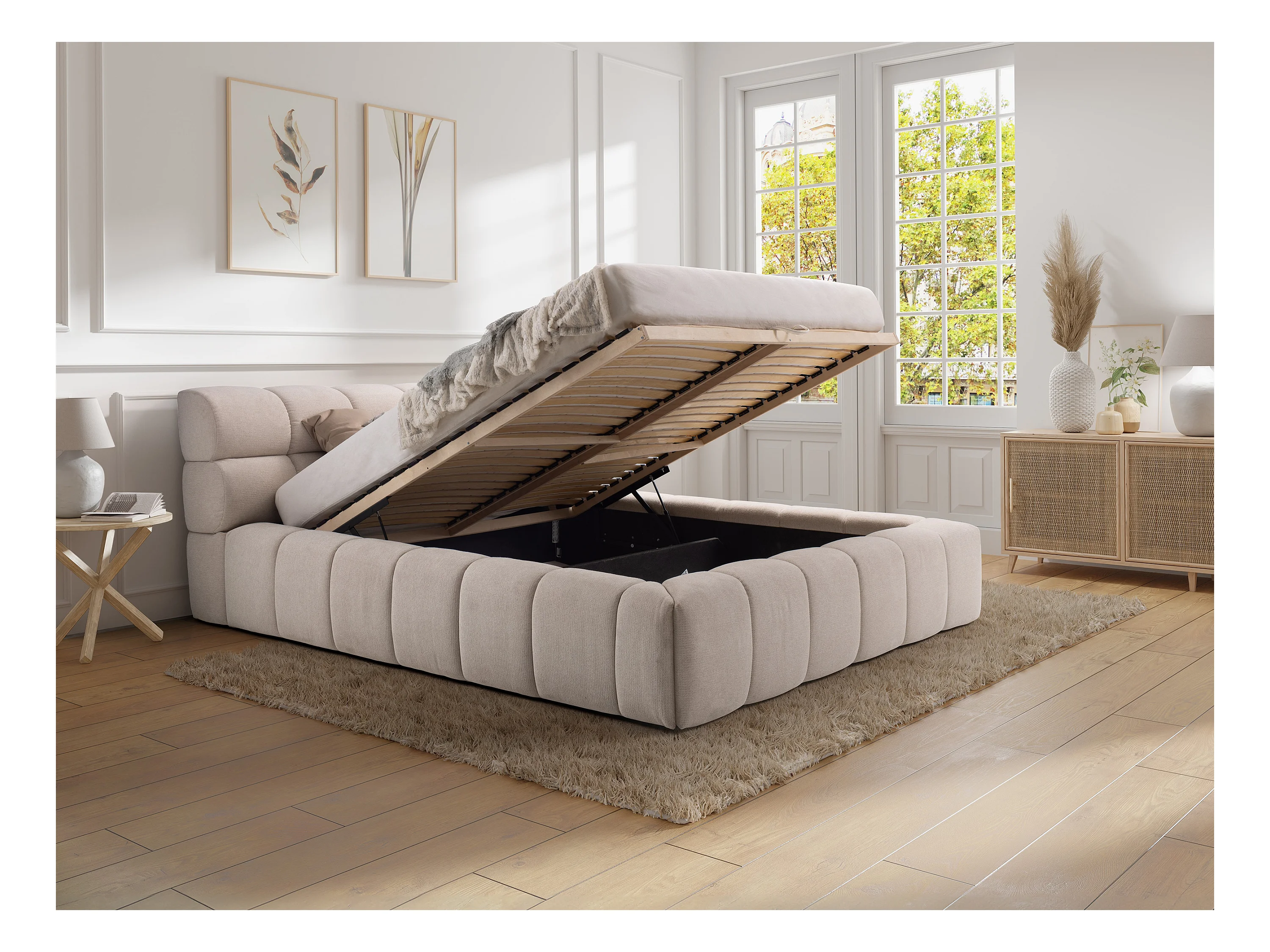 Lit coffre 200 x 200 cm - Tissu - Beige + Matelas - FORVIK de Pascal Morabito