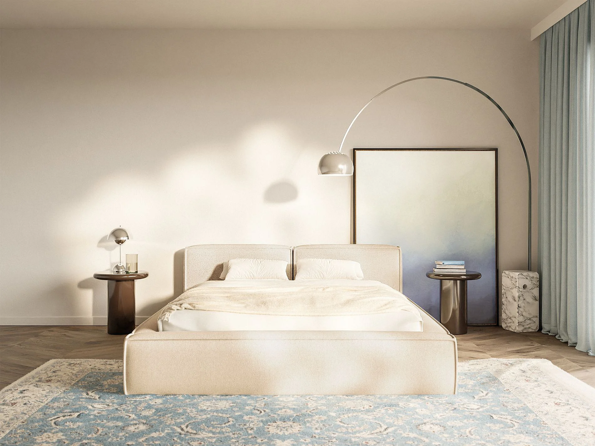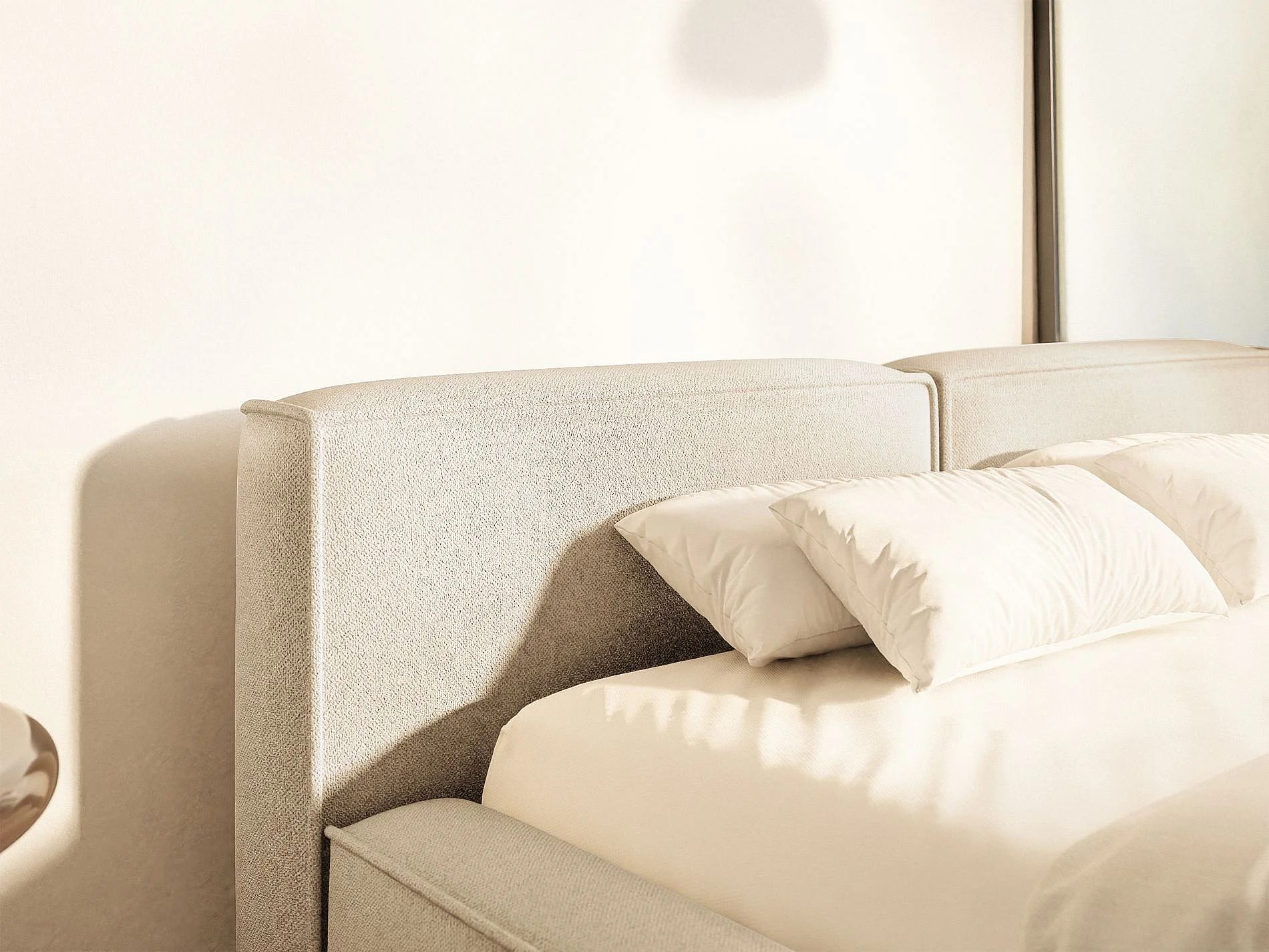 Lit coffre 200x200 avec coffre – sommier à lattes – chenille – beige clair – TILVES SLIM