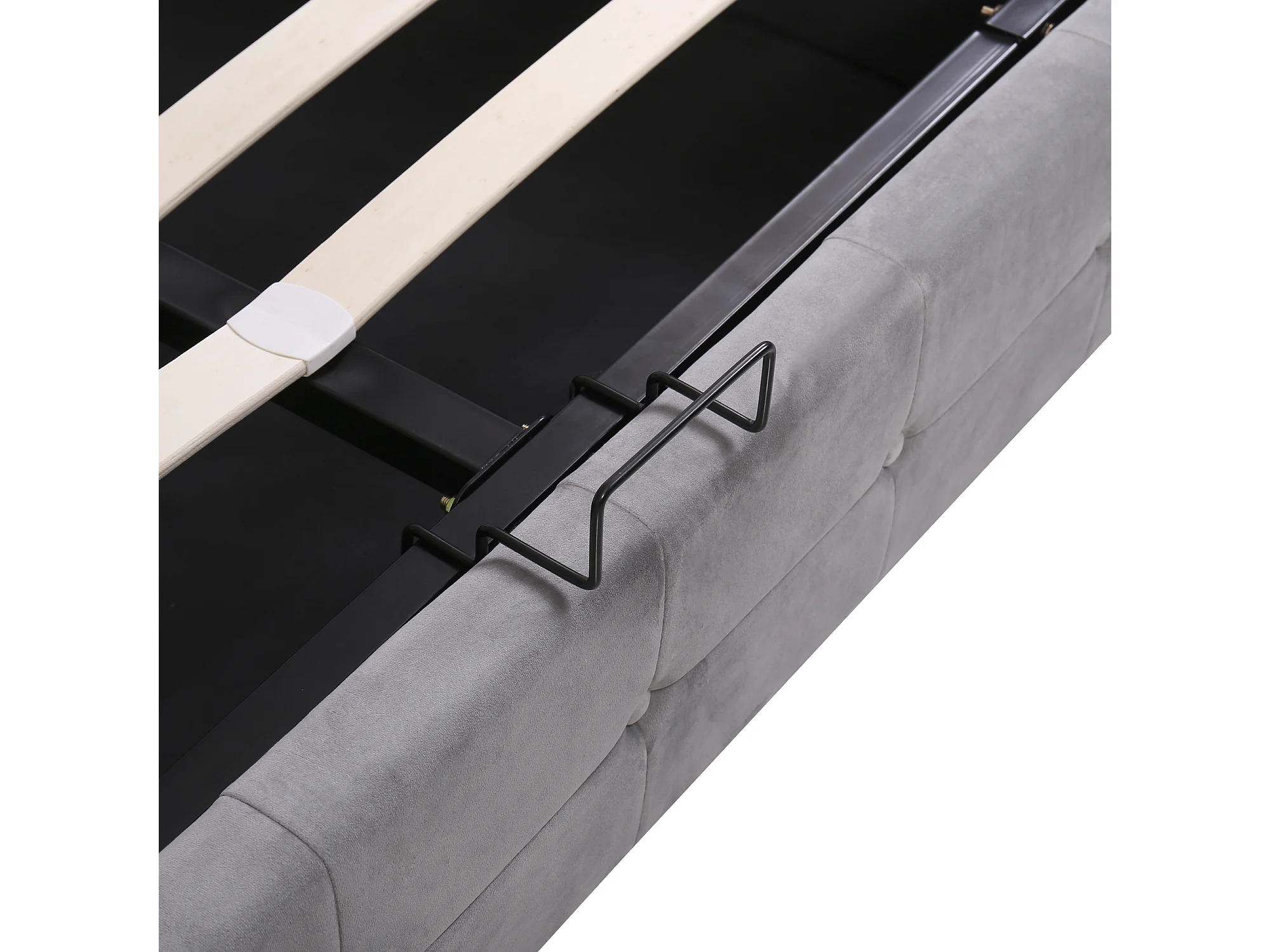 Lit Coffre 203c144.5c106 cm avec tête de lit rembourrée et réglable Espace de rangement en gris pour adultes et adolescents