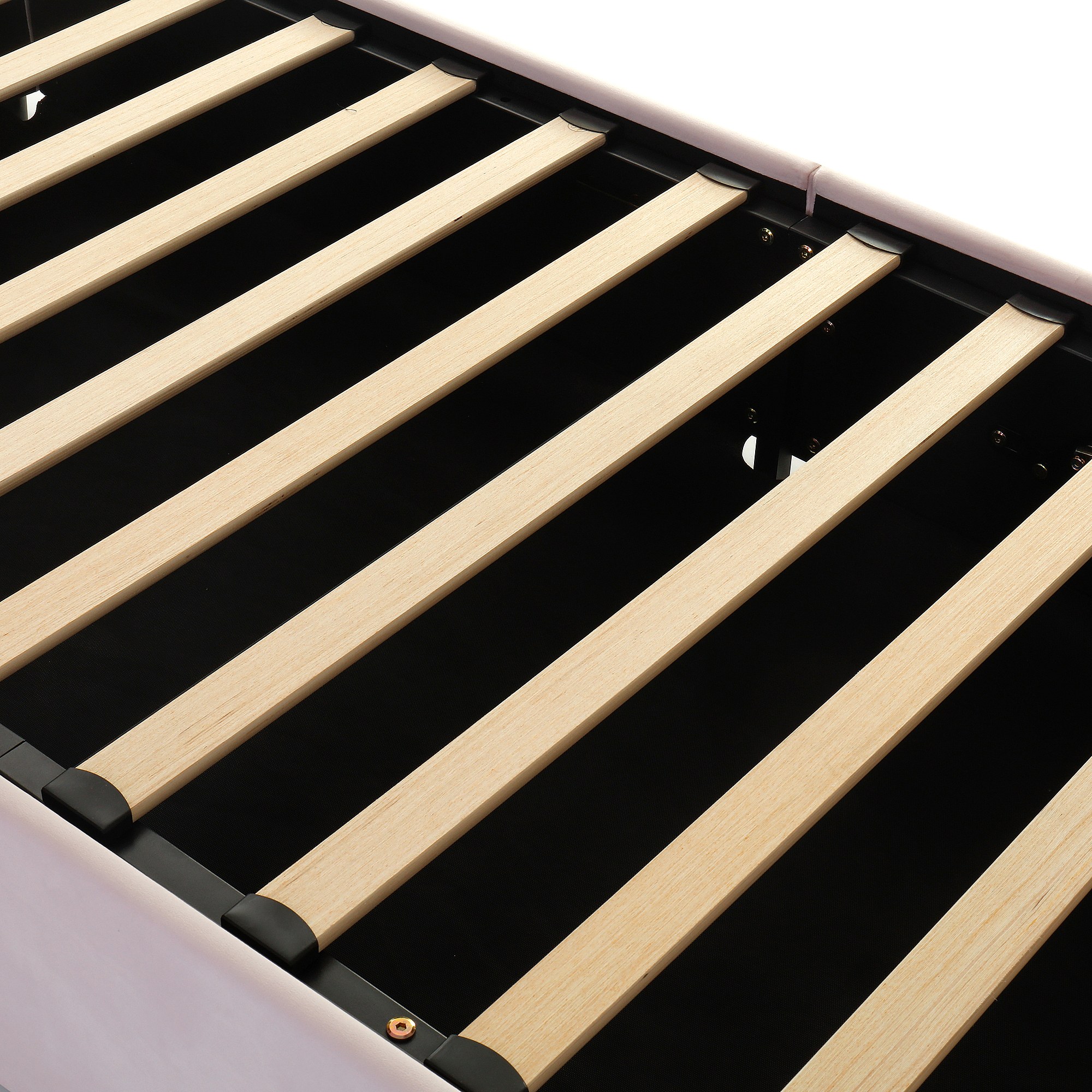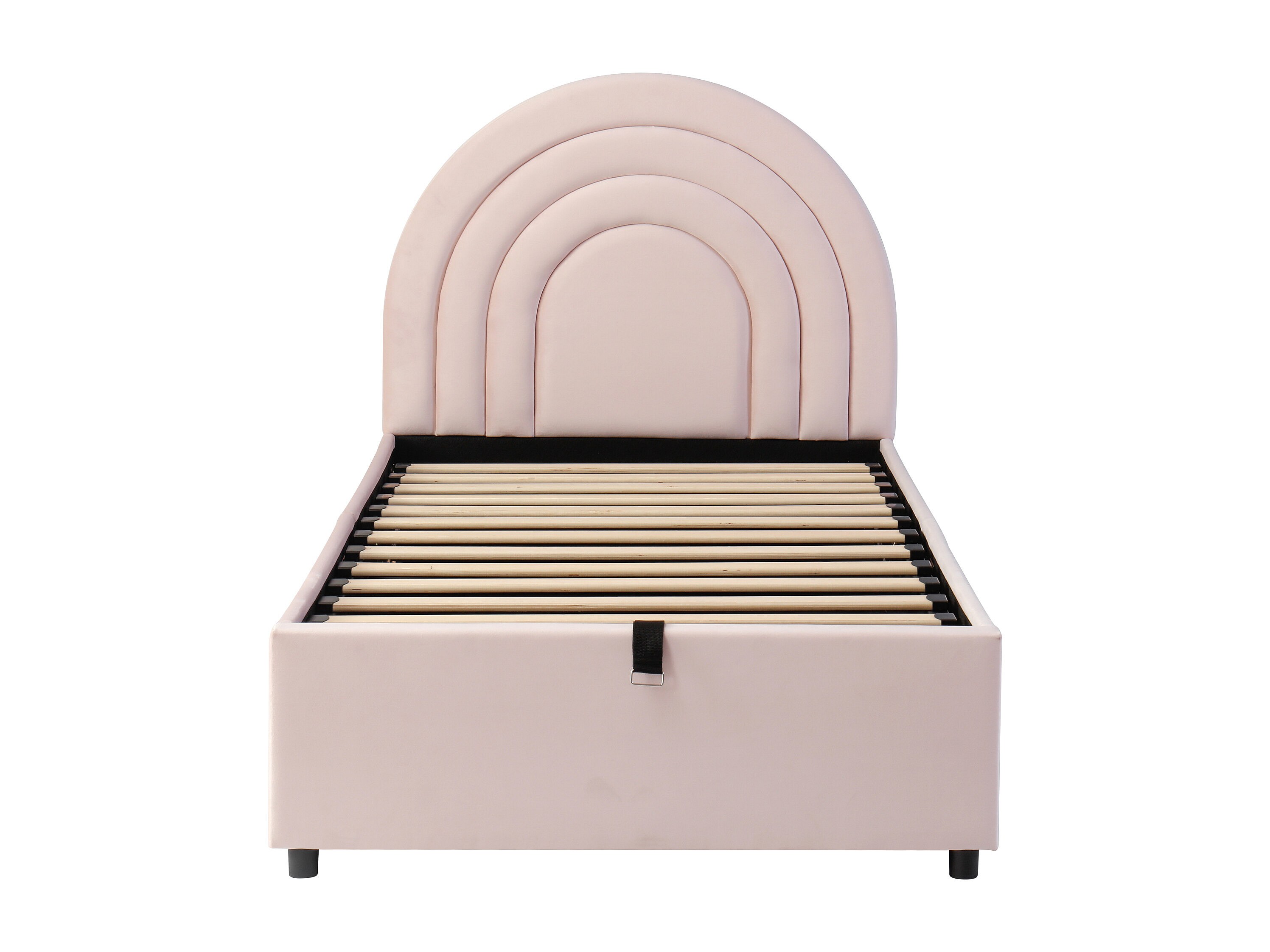 Lit coffre 90x200 cm avec sommier - velours - rose (sans matelas)